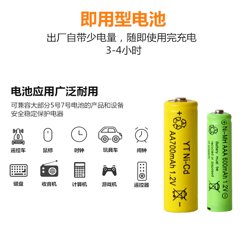 5号7号电动玩具枪挖掘机遥控汽车可充电电池套装通用1.2VAA700mAh