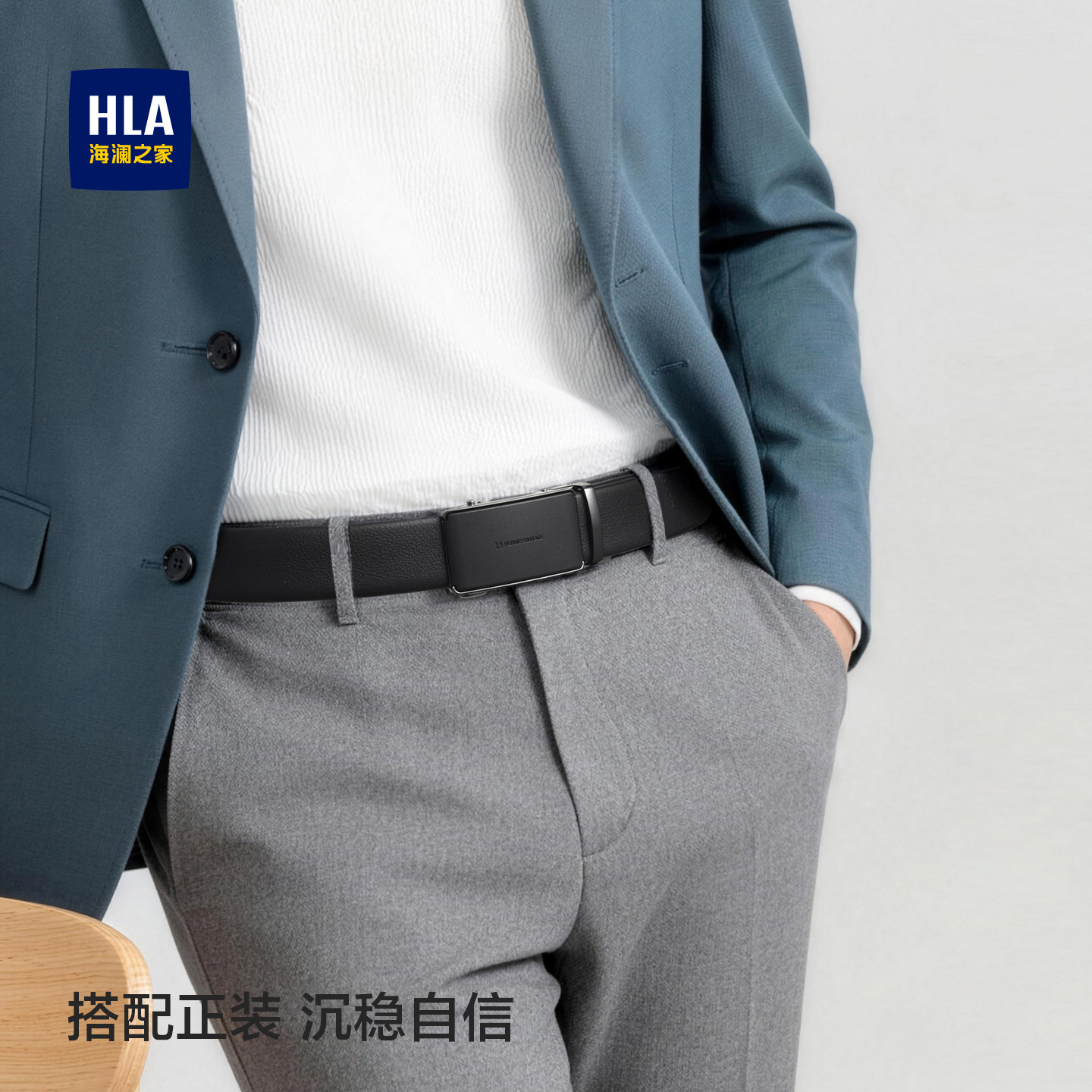 海澜之家男士针扣皮带真牛皮腰带年轻人商务百搭新款西装裤带正品