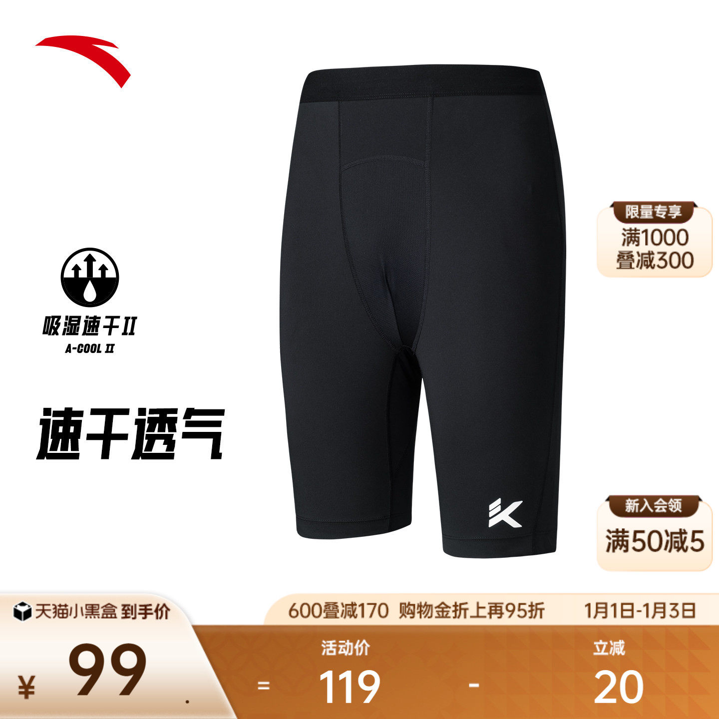 安踏速干裤 | 篮球紧身五分裤男夏季新款透气跑步短裤高弹压缩裤