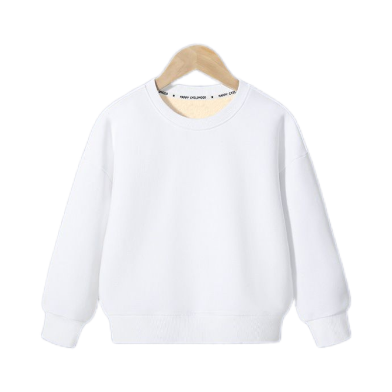 巴布豆儿童打底衫加绒加厚秋冬2025新款男童女童白色卫衣保暖冬装