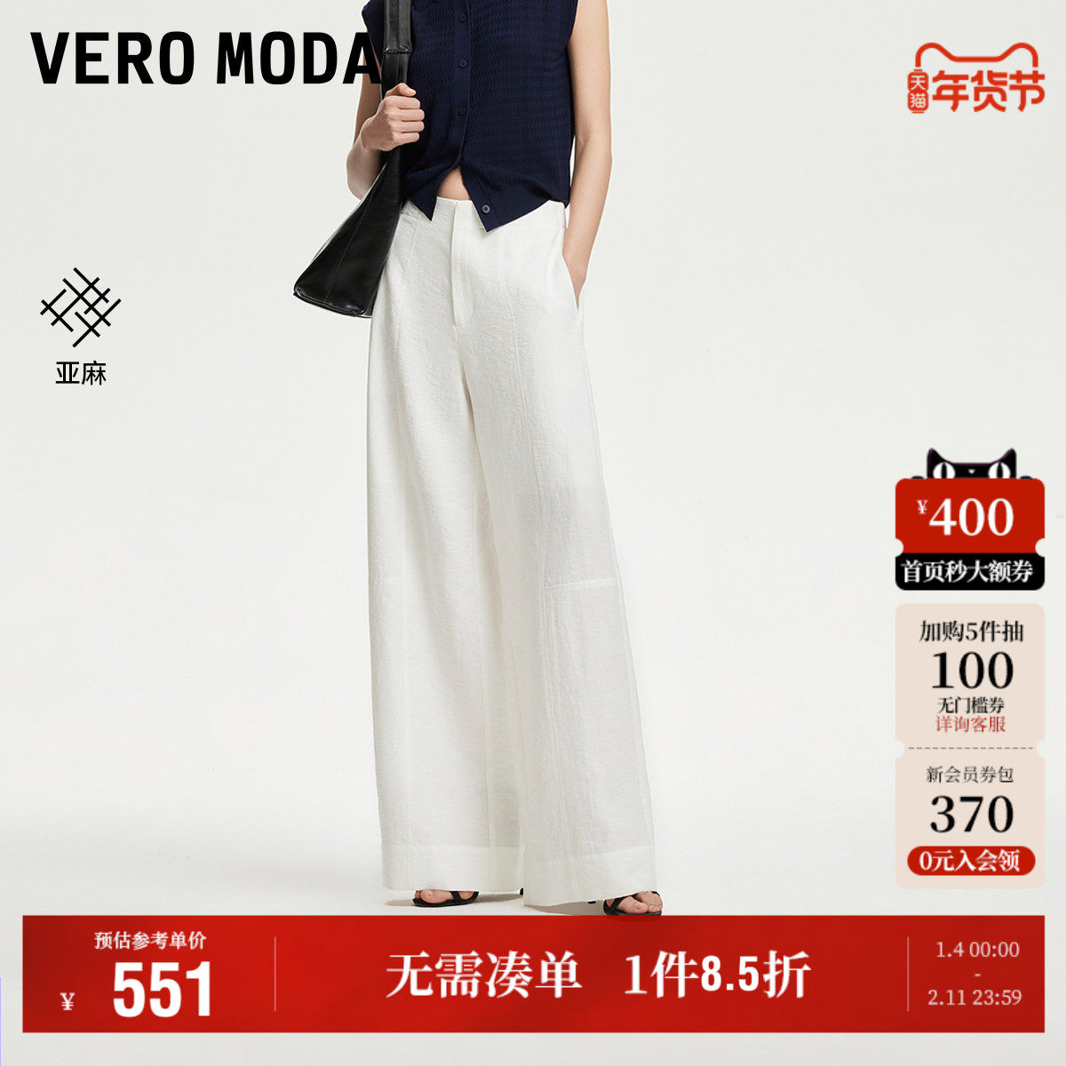 Vero Moda奥莱休闲裤女2025秋冬新款含亚麻纯色休闲阔腿裤裤子