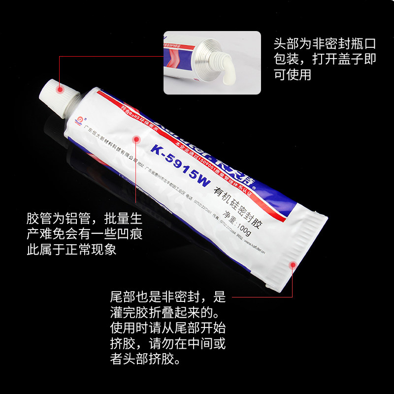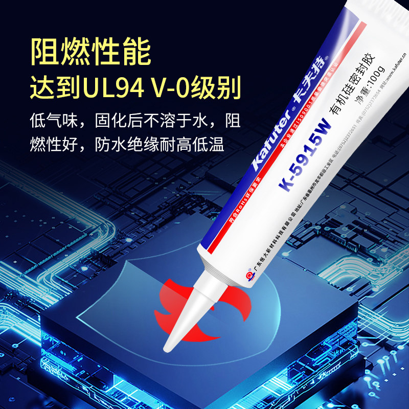 卡夫特K5915阻燃型密封胶 白色硅橡胶硅胶电子线路板元器件固定绝缘防水K-5915B黑色有机硅工业胶粘剂 UL认证