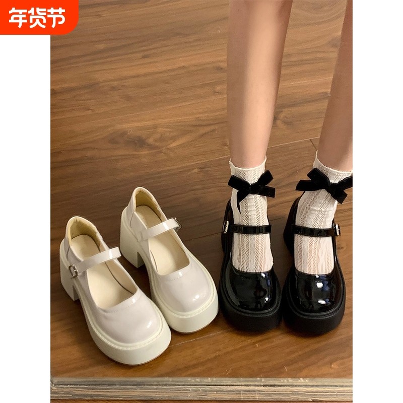 粗跟高跟小皮鞋女2025春夏季新款厚底增高法式玛丽珍单鞋中跟圆头