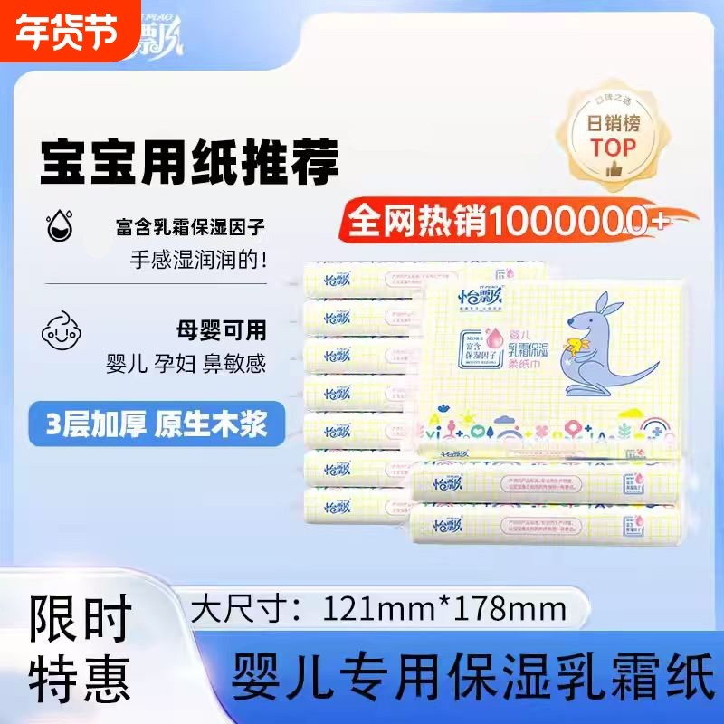 丝飘乳霜保湿纸巾婴儿纸新生儿用宝宝面巾纸抽纸家用可擦手实惠装