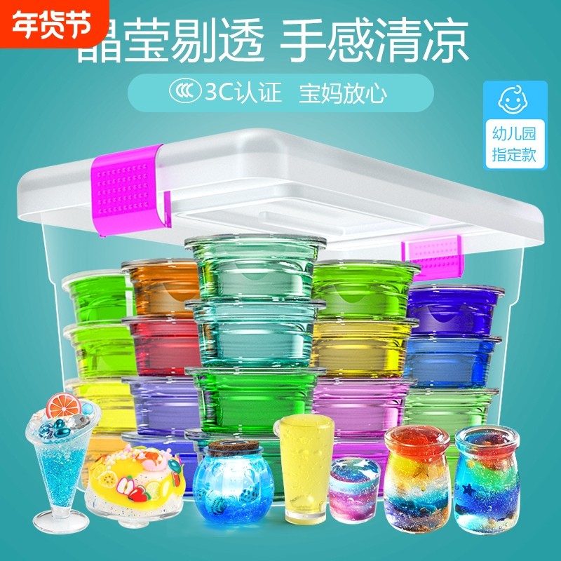 网红水晶泥套装史莱姆儿童无异味透明彩泥橡皮泥黏粘土起泡胶男女孩玩具幼儿园密封24色泡泡
