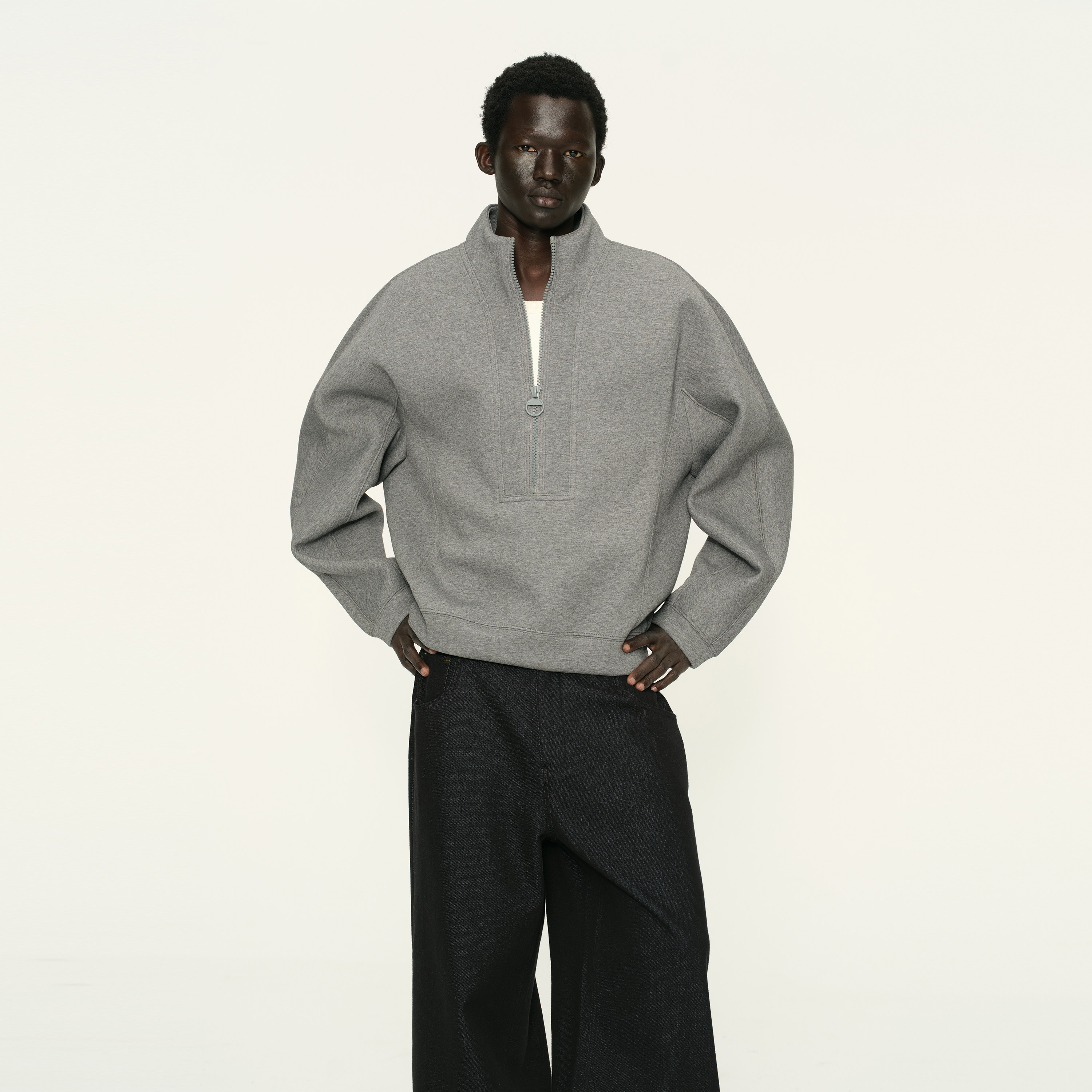 DUPU杜朴 设计师款半门襟拉链卫衣 立领微宽松高级灰叠穿卫衣