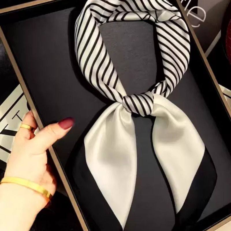 2024新款四季百搭长条小丝巾女薄款洋气高级黑白围脖领巾韩式围巾
