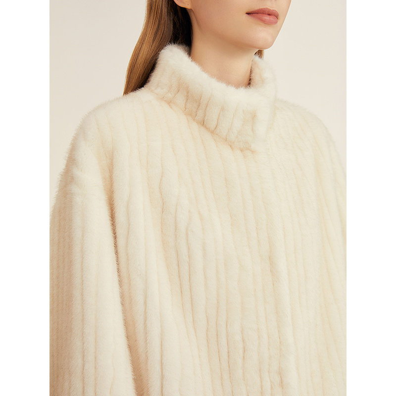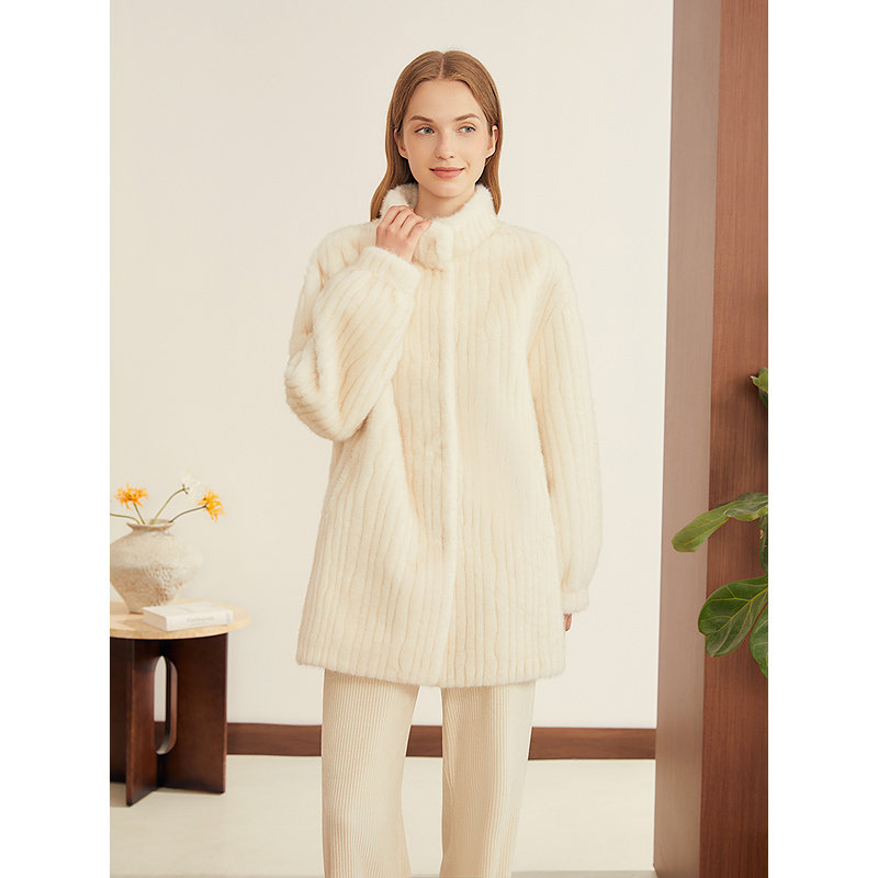 YINER音儿专选2025秋季新款中长款H型小立领仿水貂环保皮草外套