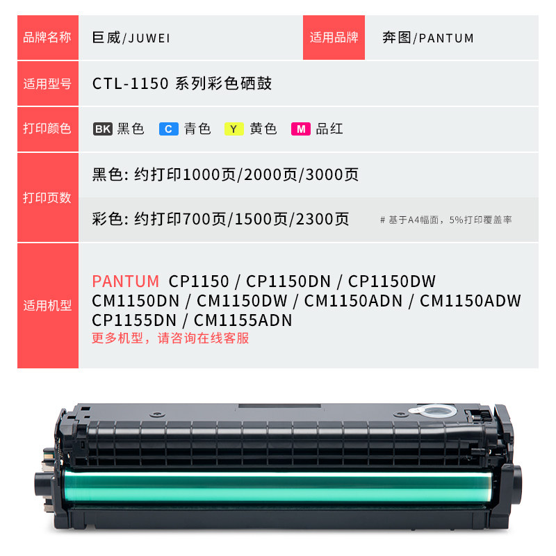 适用奔图CP1155DN硒鼓CP1150DN CP1150DW粉盒CM1150DN/DW/ADN/ADW彩色墨盒CM1155ADN打印墨粉CTL-1150碳粉盒
