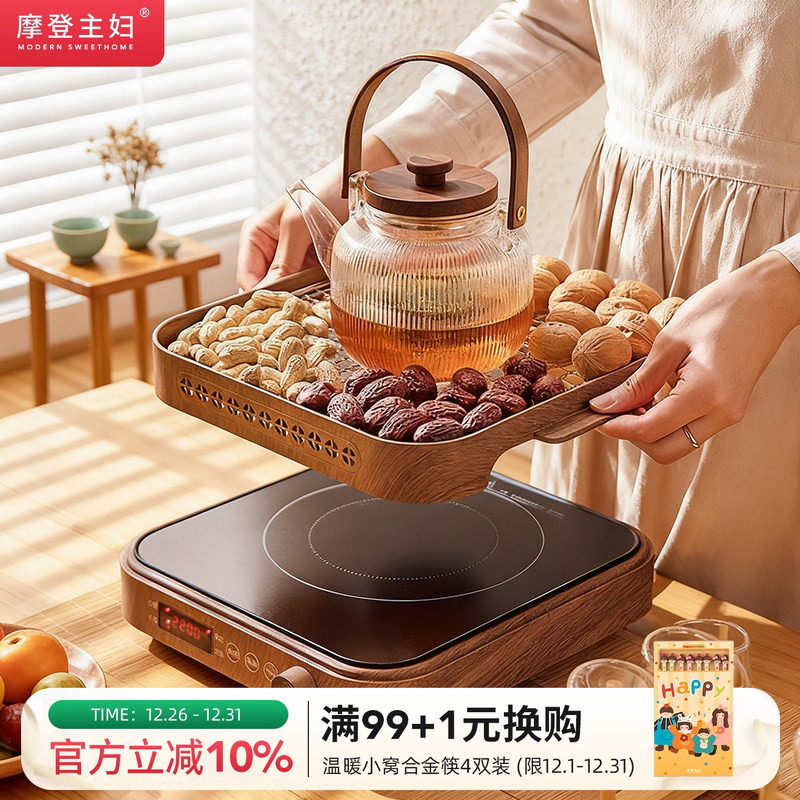 摩登主妇围炉煮茶电陶炉套装家用室内2025新款烤火炉玻璃养生水壶