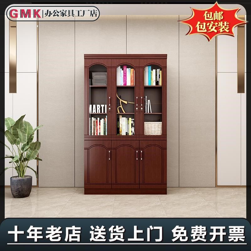 办公文件柜木质办公室资料档案柜带玻璃书柜带锁家用收纳储物柜子