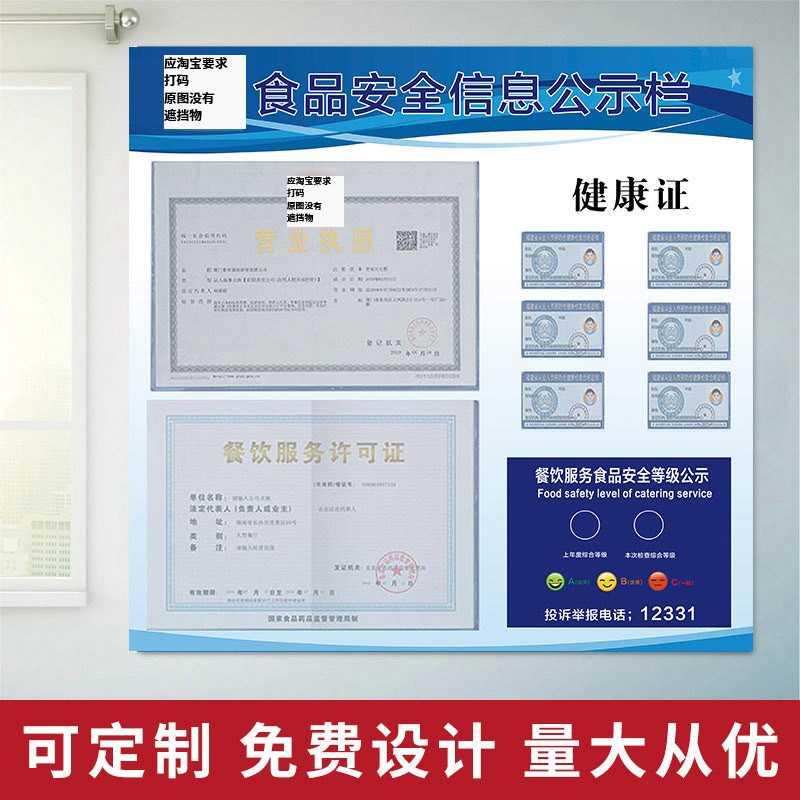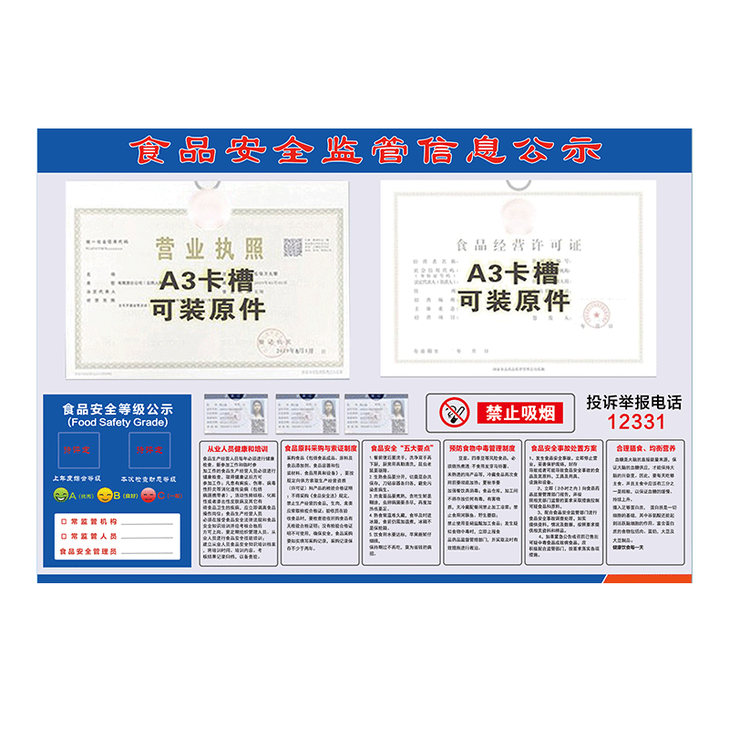 食品安全信息公示栏餐饮服务营业执照卫生经营许可证公示牌食品安全信息健康证三合一框展示牌信息监督牌定制