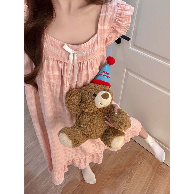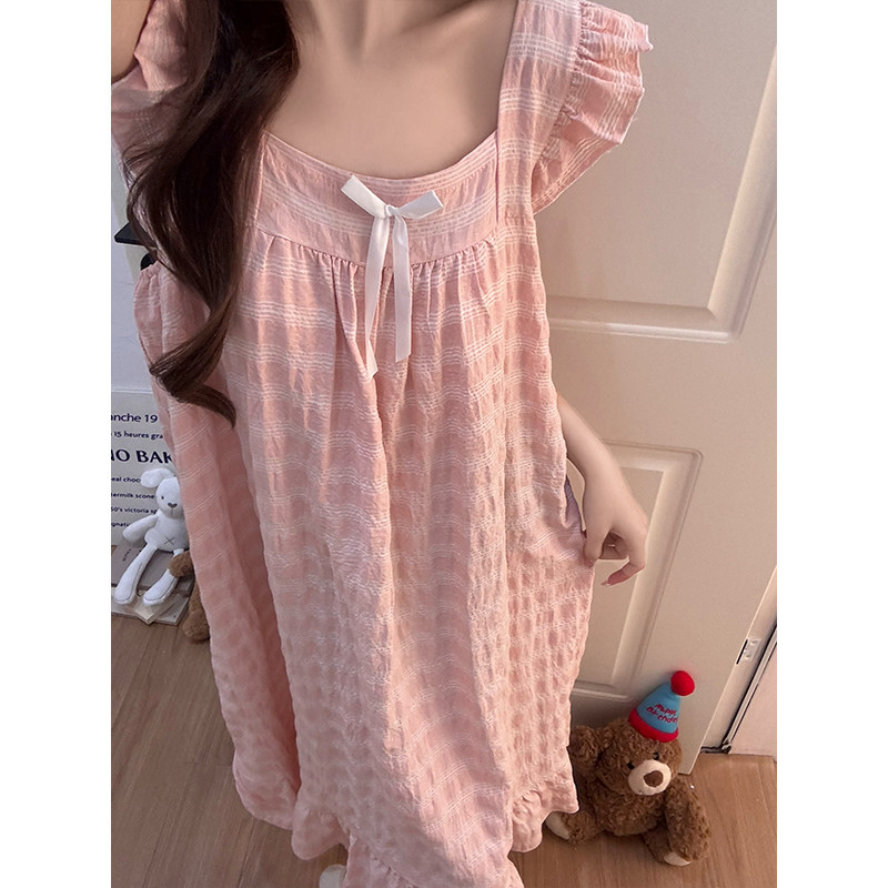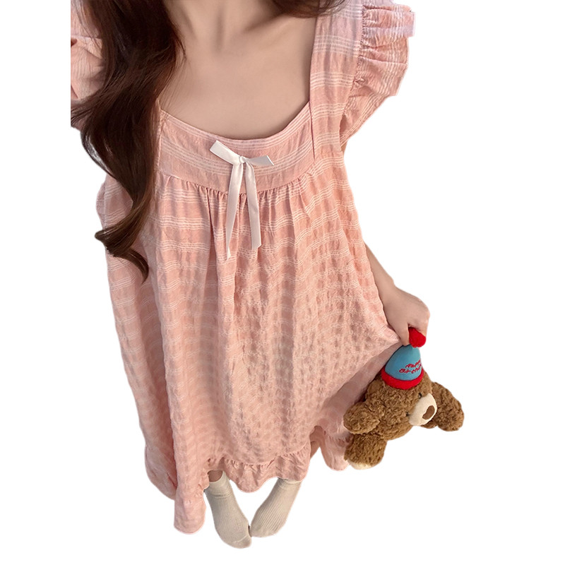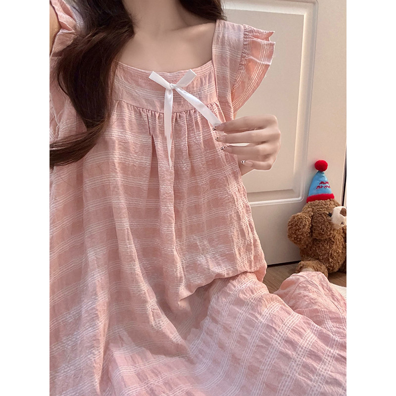 公主风睡裙女夏季2026新款带胸垫一体棉绸小飞袖睡衣少女生家居服
