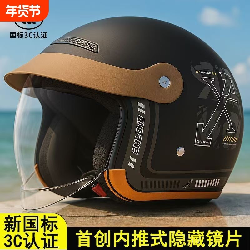 新国标3c认证电动车头盔电瓶摩托车安全帽夏季半盔四季通用镜片
