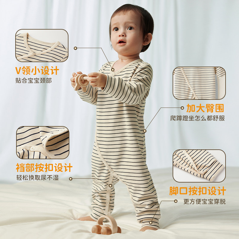 婧麒婴幼儿衣服春秋连体衣小月龄纯棉宝宝新生儿早秋长袖外出哈衣