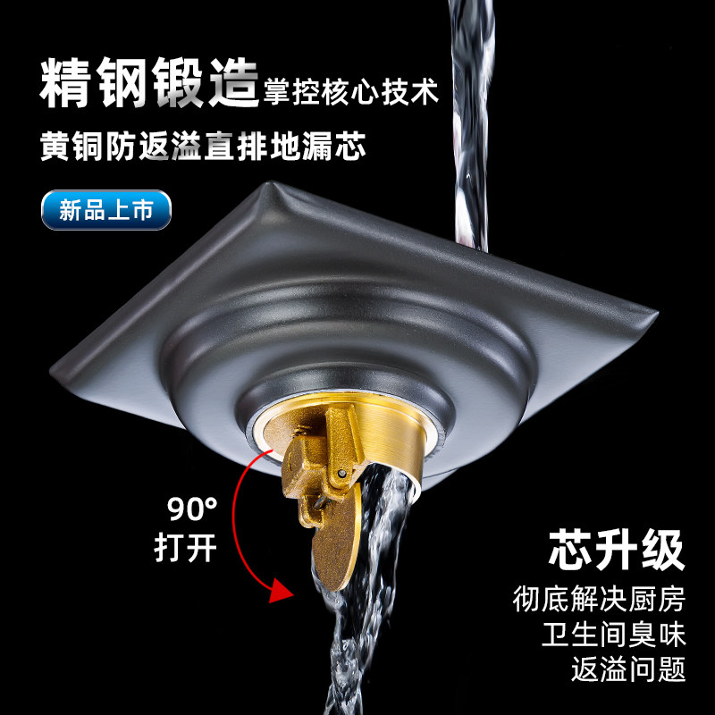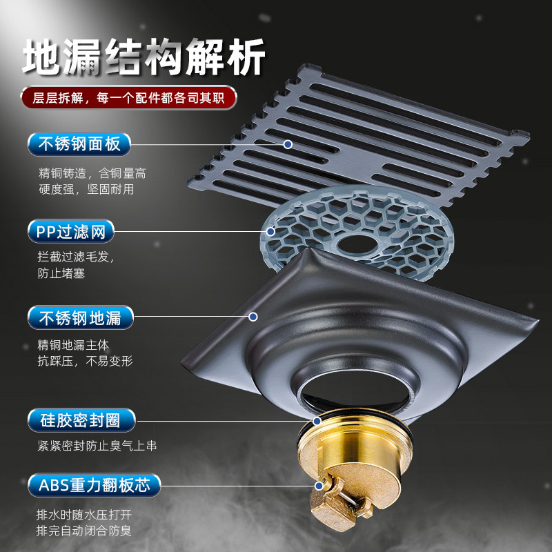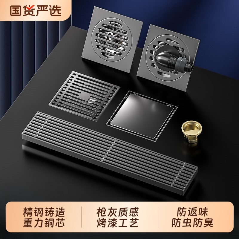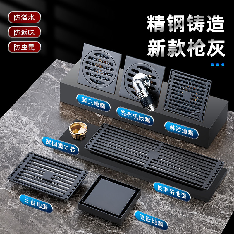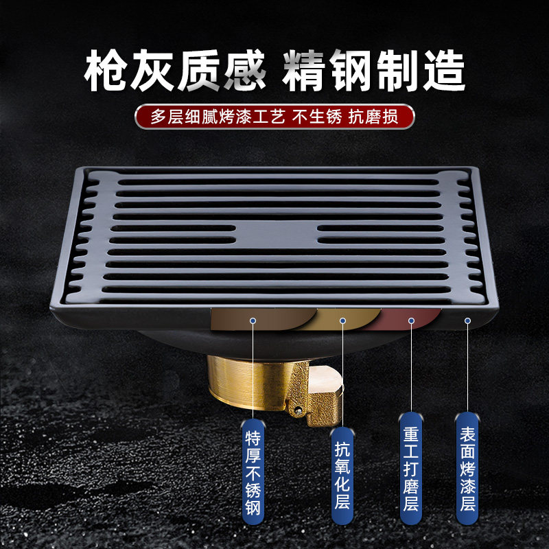 304不锈钢地漏枪灰色全铜地漏芯卫生间淋浴房下水道防臭虫洗衣机