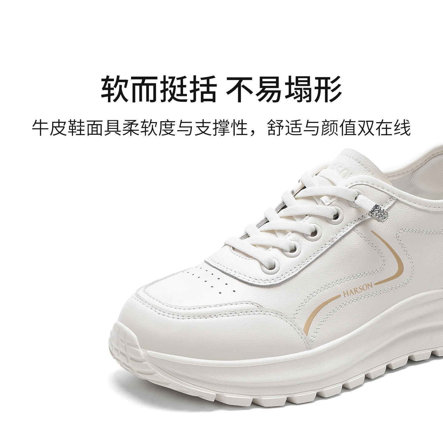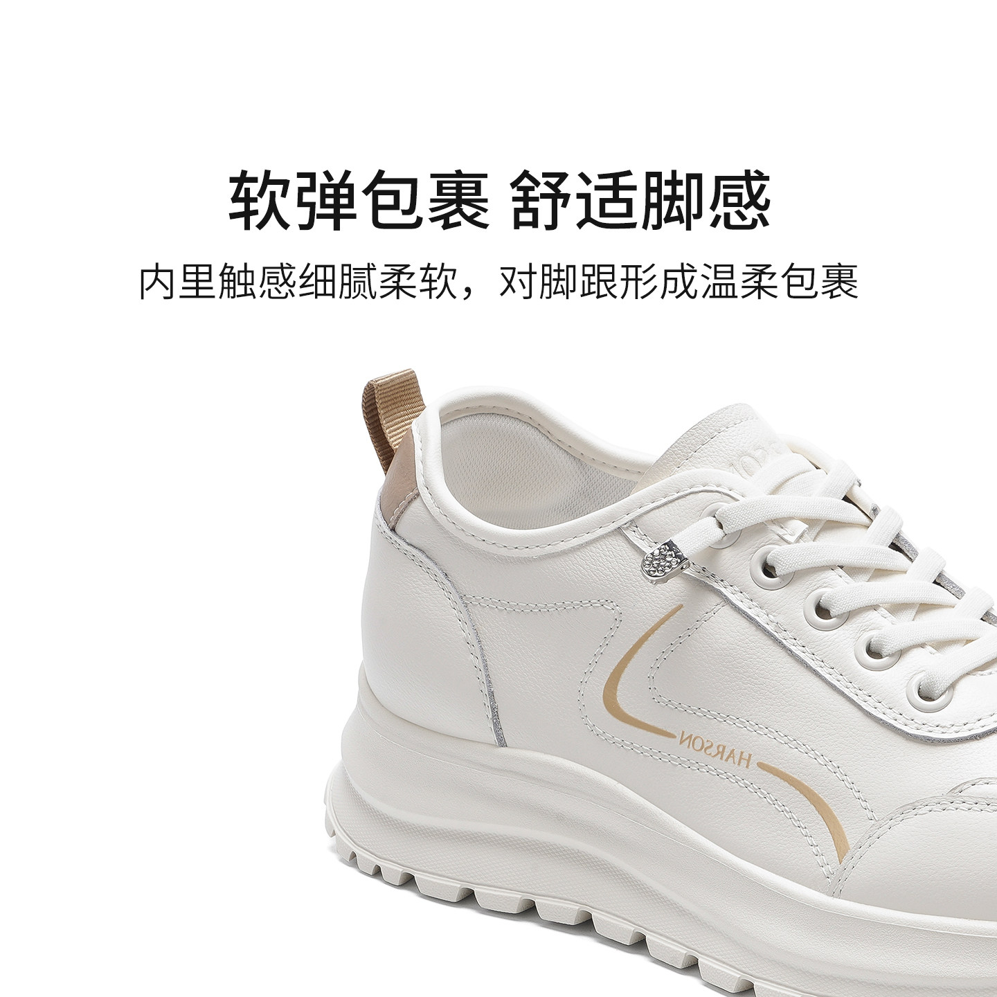 哈森圆头厚底小白鞋女简约舒适软底运动休闲鞋2026新款HCM261403