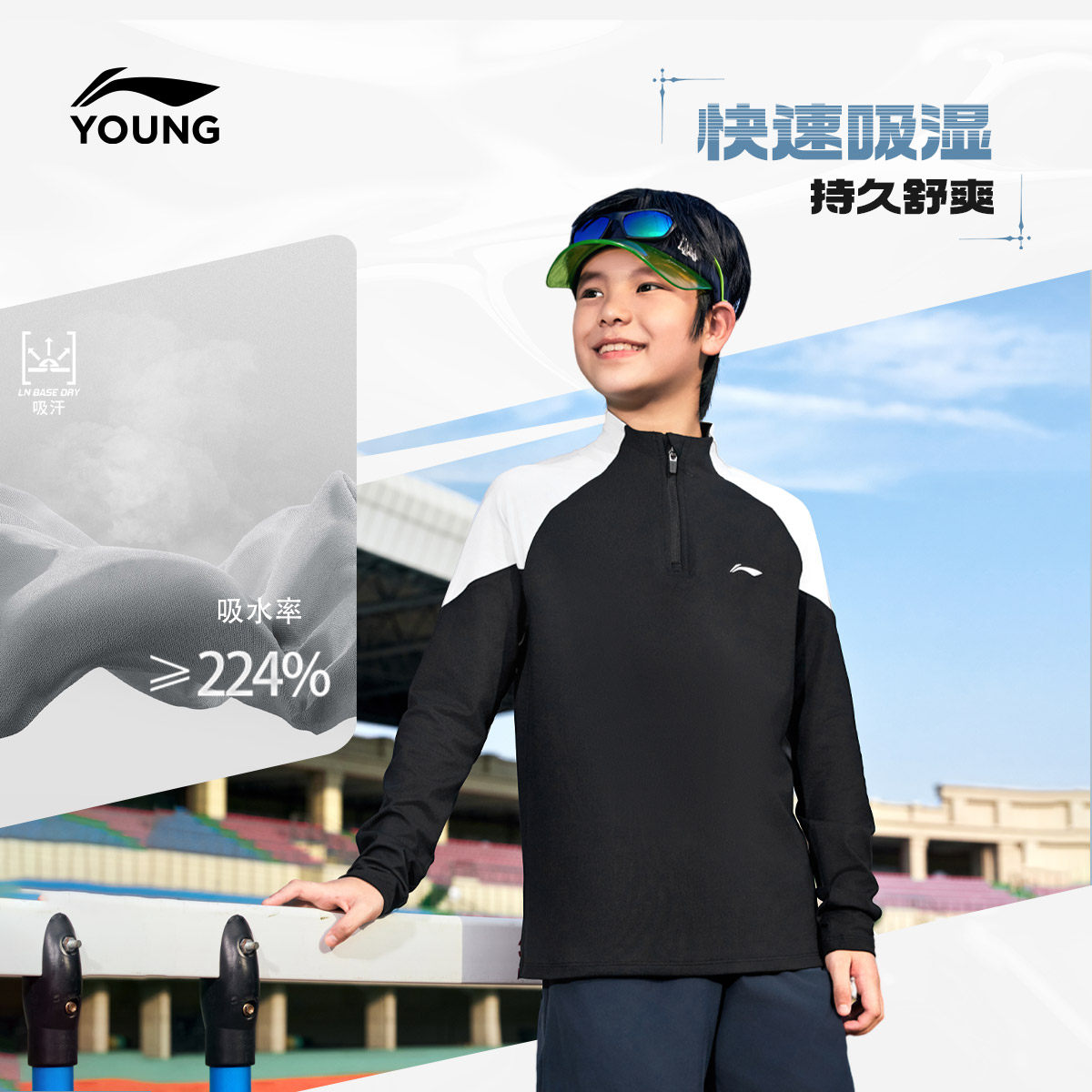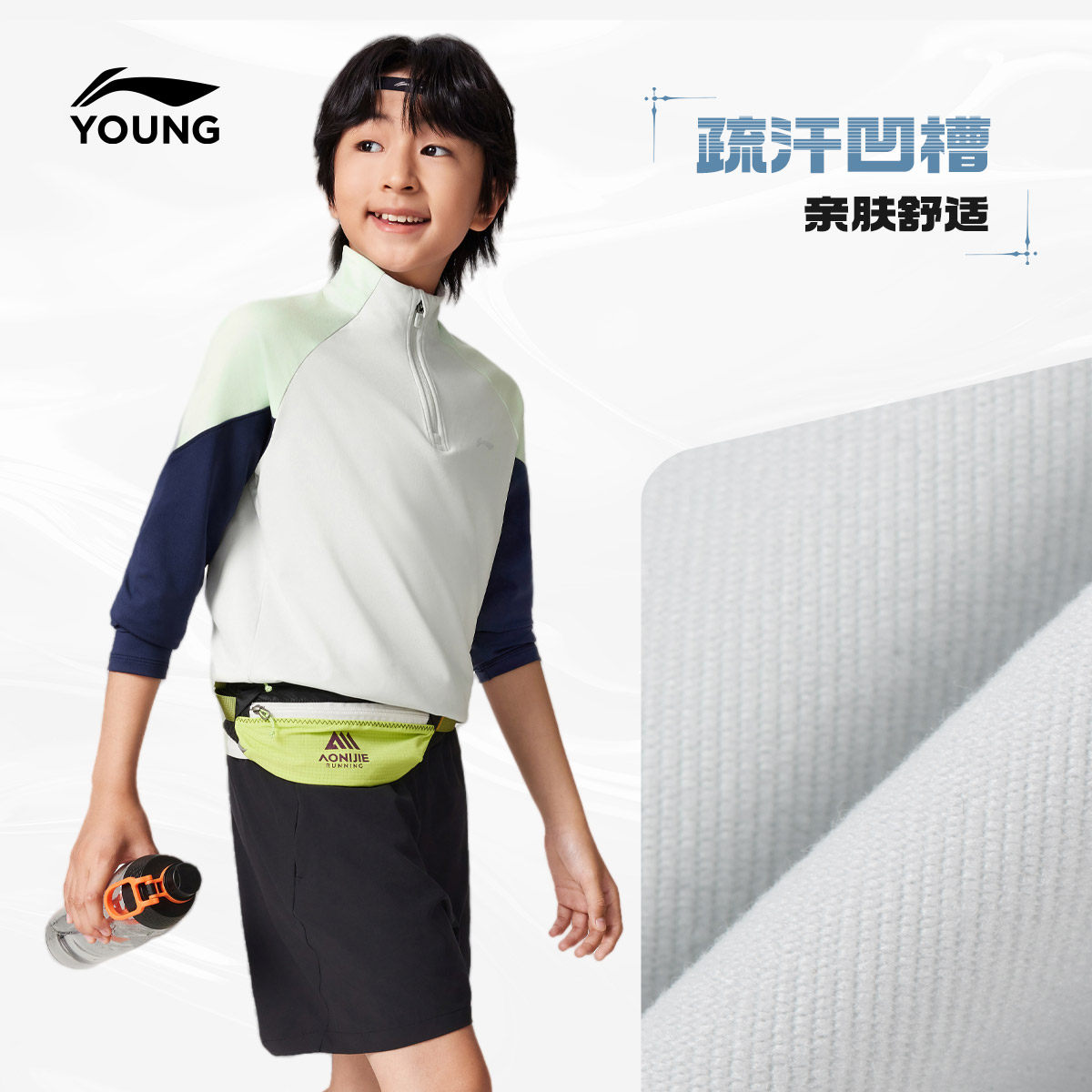 李宁儿童速干衣男孩上衣中大童男童装短袖长袖T恤女童青少年秋装
