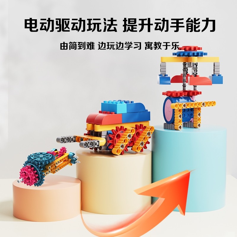 儿童大颗粒积木电动齿轮机械科教3益智拼装玩具9656男孩6岁礼物