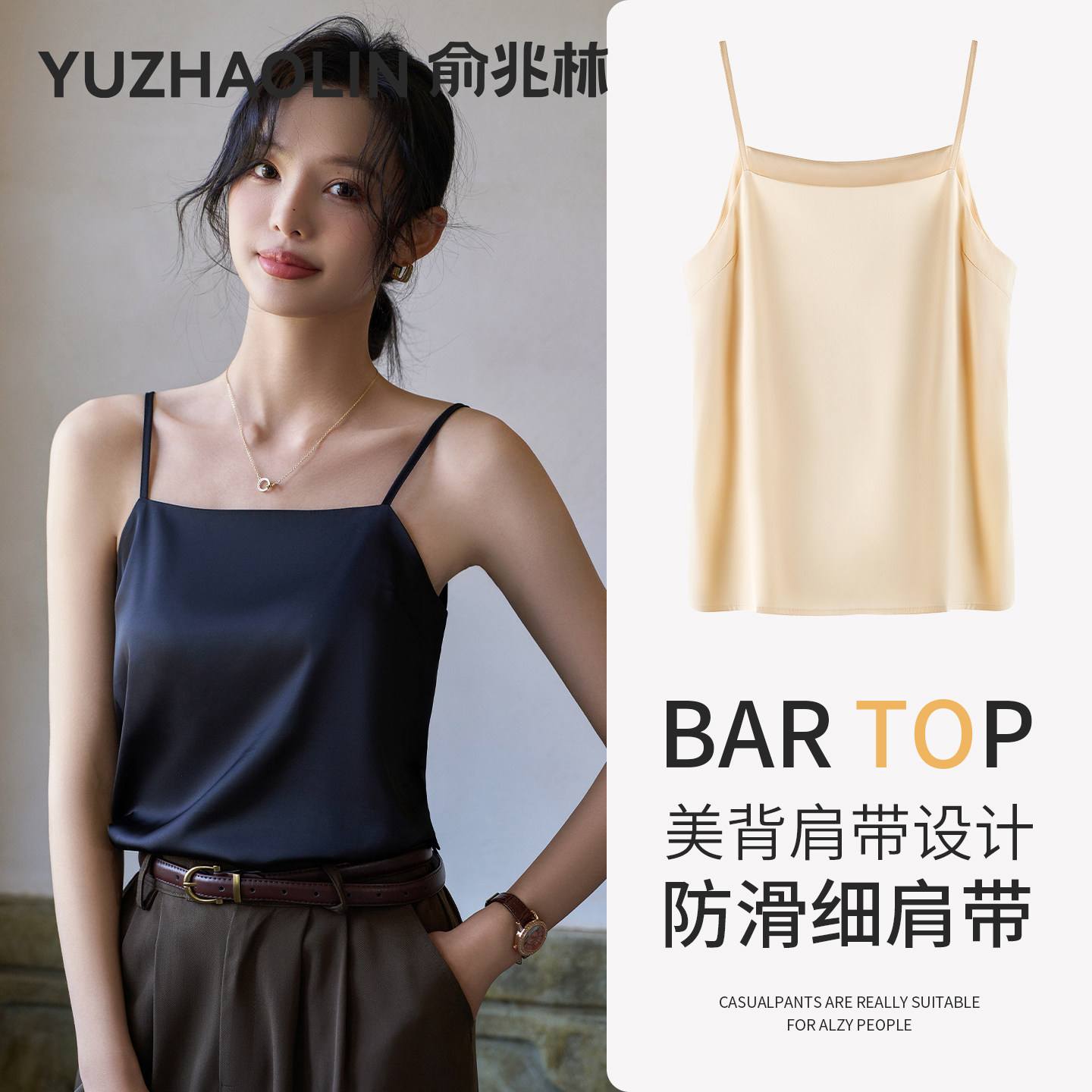 黑色一字领真丝吊带背心女内搭春夏季缎面醋酸防走光无袖打底上衣