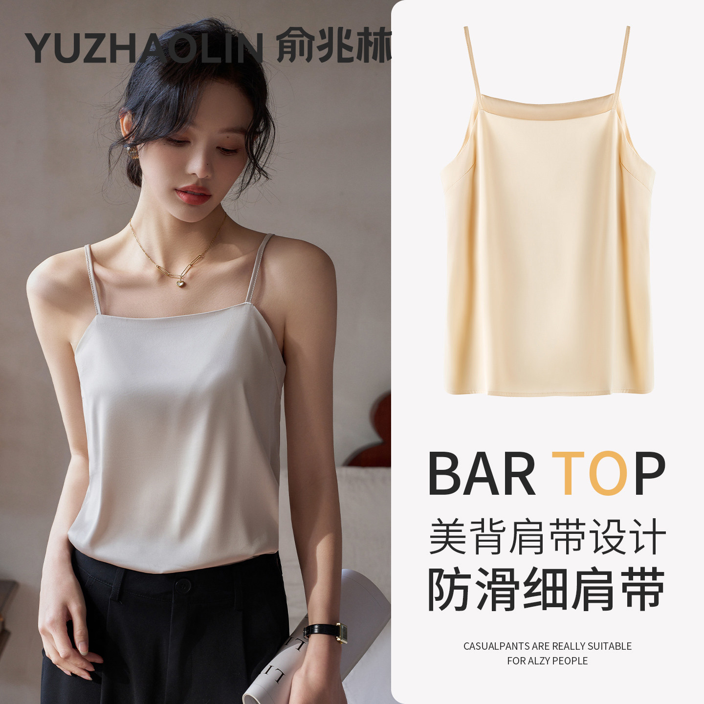 法式性感百搭细肩带吊带真丝裸感不勒肩防滑