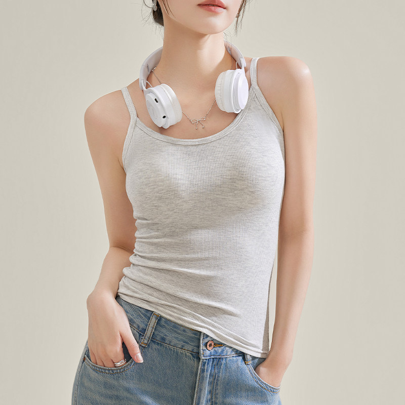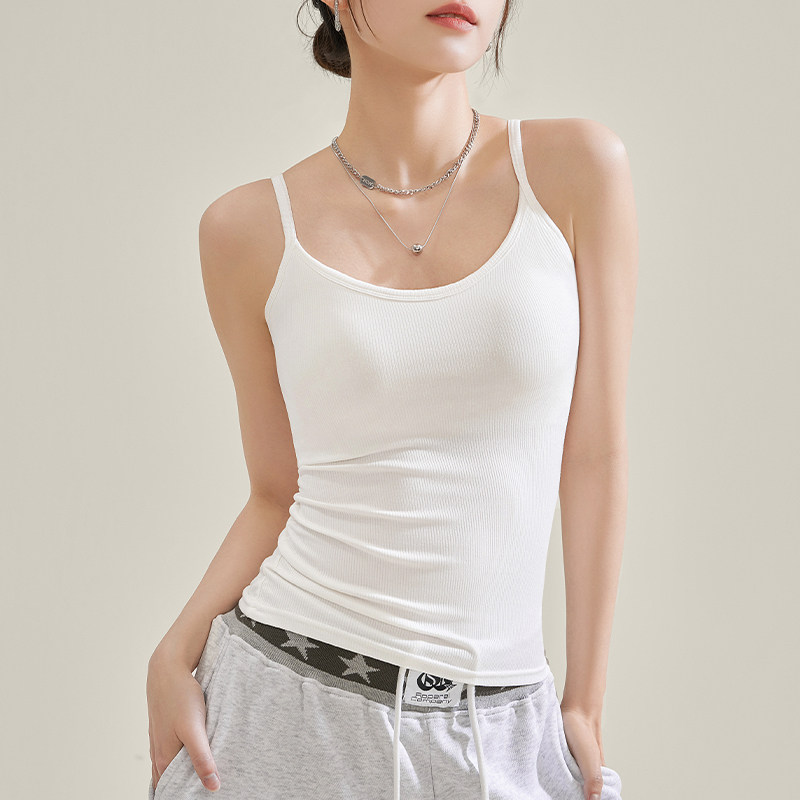 白色吊带背心女士2025新款内搭夏季外穿带胸垫遮副乳螺纹无袖上衣