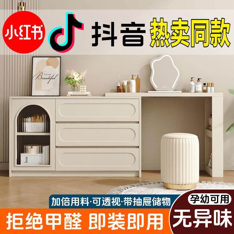 法式浪漫奶油风梳妆台斗柜小户型卧室床尾化妆桌一体收纳柜带抽屉