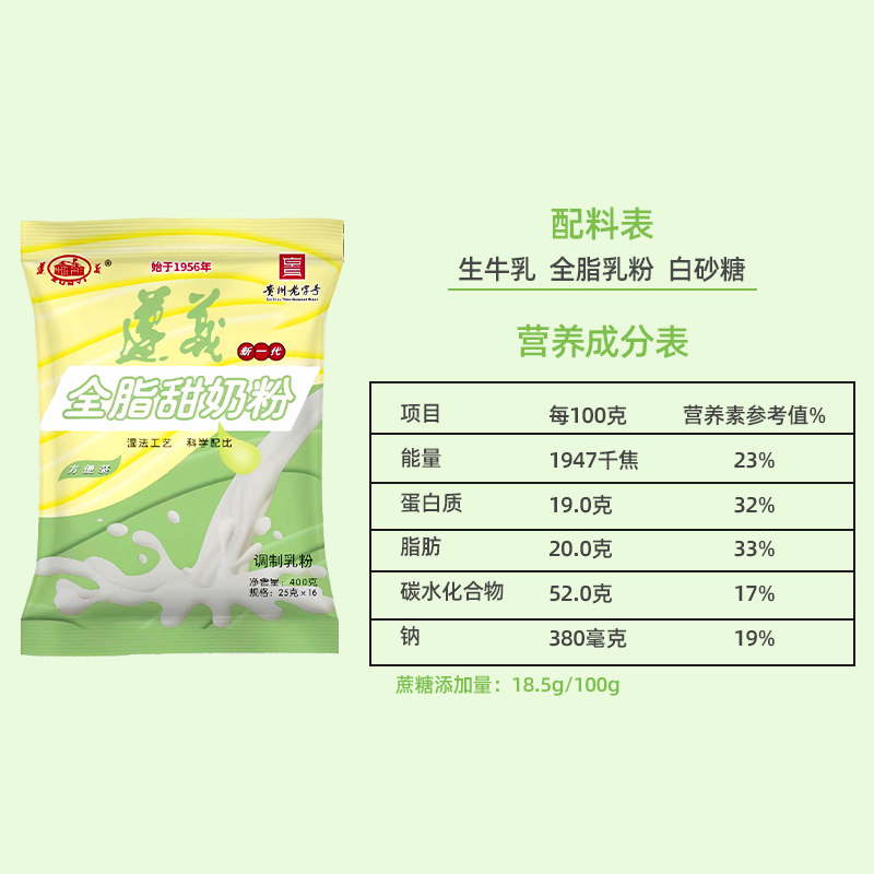 遵义奶粉新一代全脂甜奶粉科学配比全家营养独立小袋装高钙烘焙