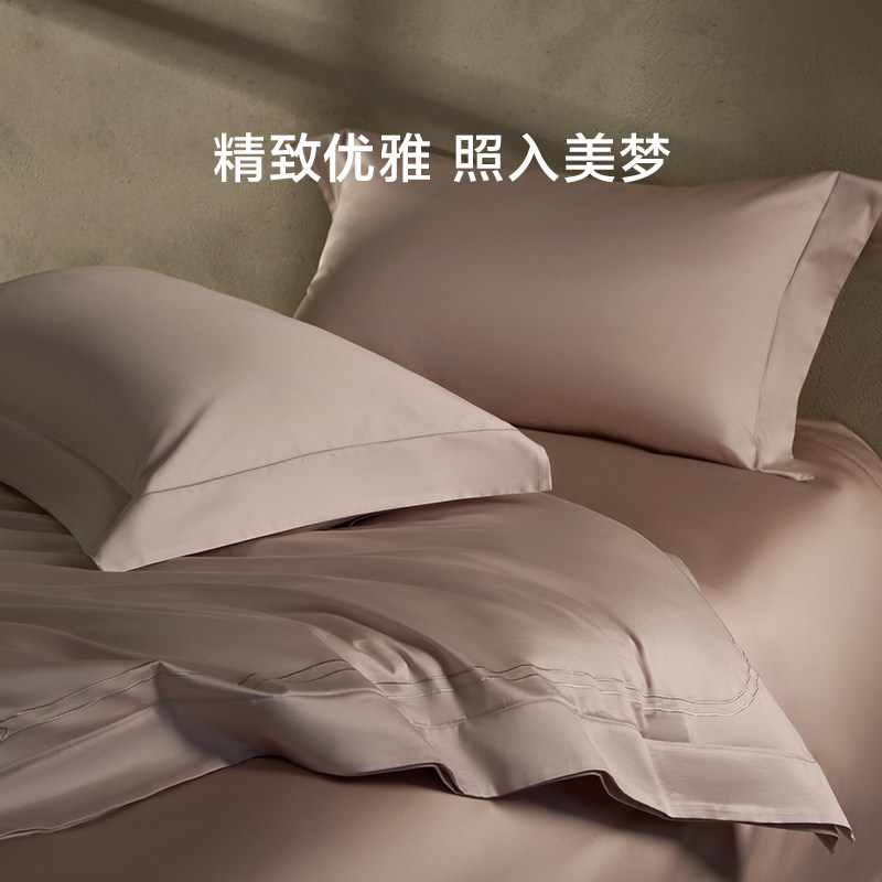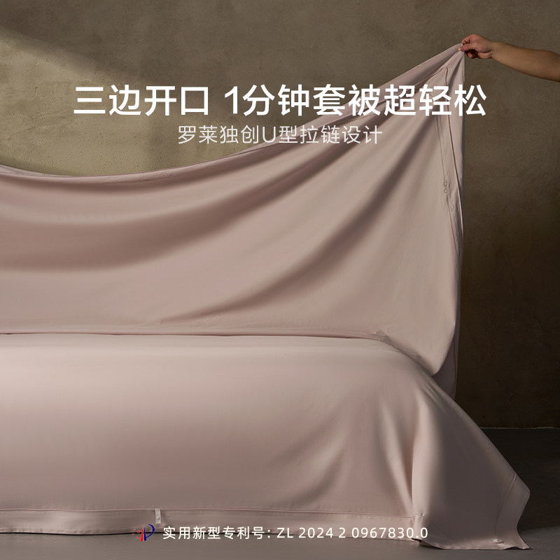 罗莱家纺26新品100支全棉U易套四件套纯棉贡缎套件1.8m双人床被套
