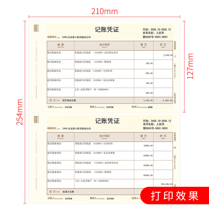一箱装KPJ101记账凭证打印纸用友凭证打印纸西玛会计记账财务会计SKPJ101用友软件T3 T6 U8 NC好会计适用