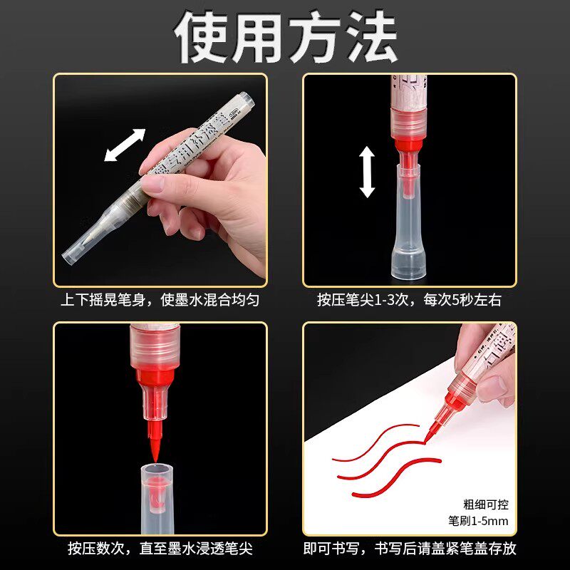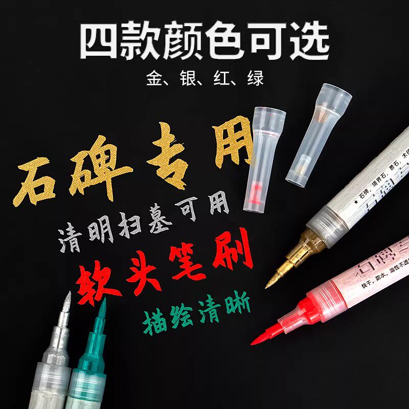 石碑油漆笔软头墓碑文补漆笔记号笔扫墓上坟修补描字笔清明节专用红漆笔绿色黑白色油性不掉色金色描碑笔防水