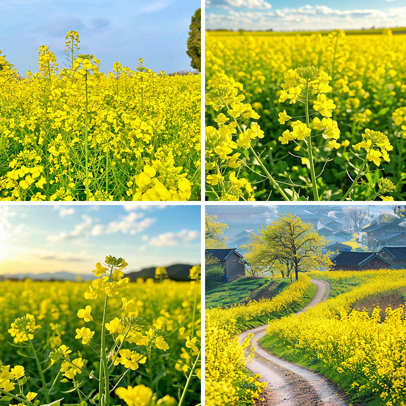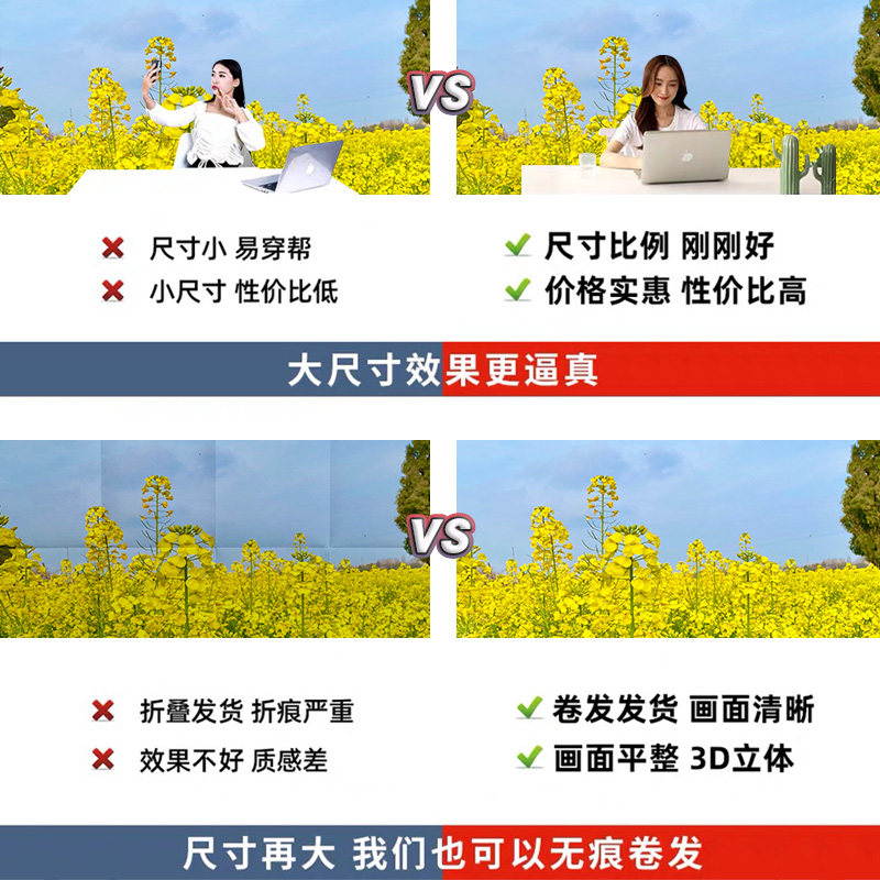 农村油菜花春日春天风景黄色网红拍照区男女主播抖音快手直播背景布3d立体壁纸画草地直播间场景布置高级感