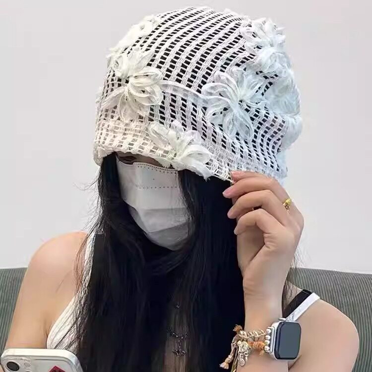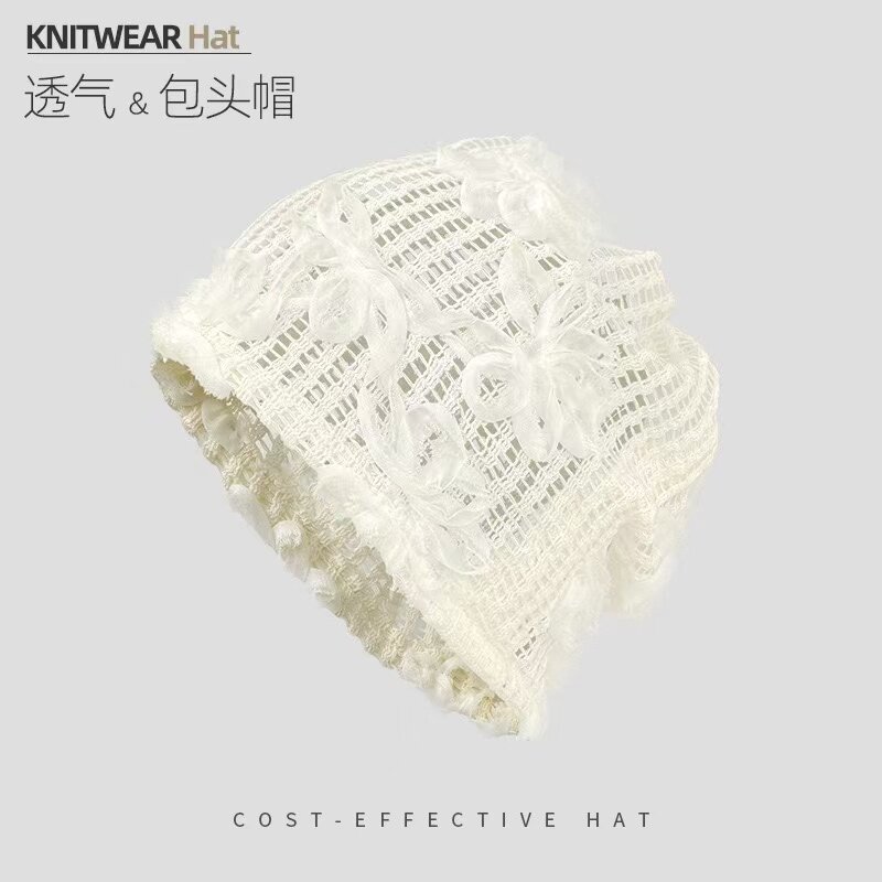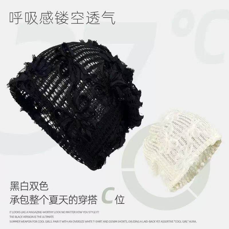 时尚薄款蕾丝亮片花朵套头帽女复古日系夏季头巾帽气质网纱帽潮