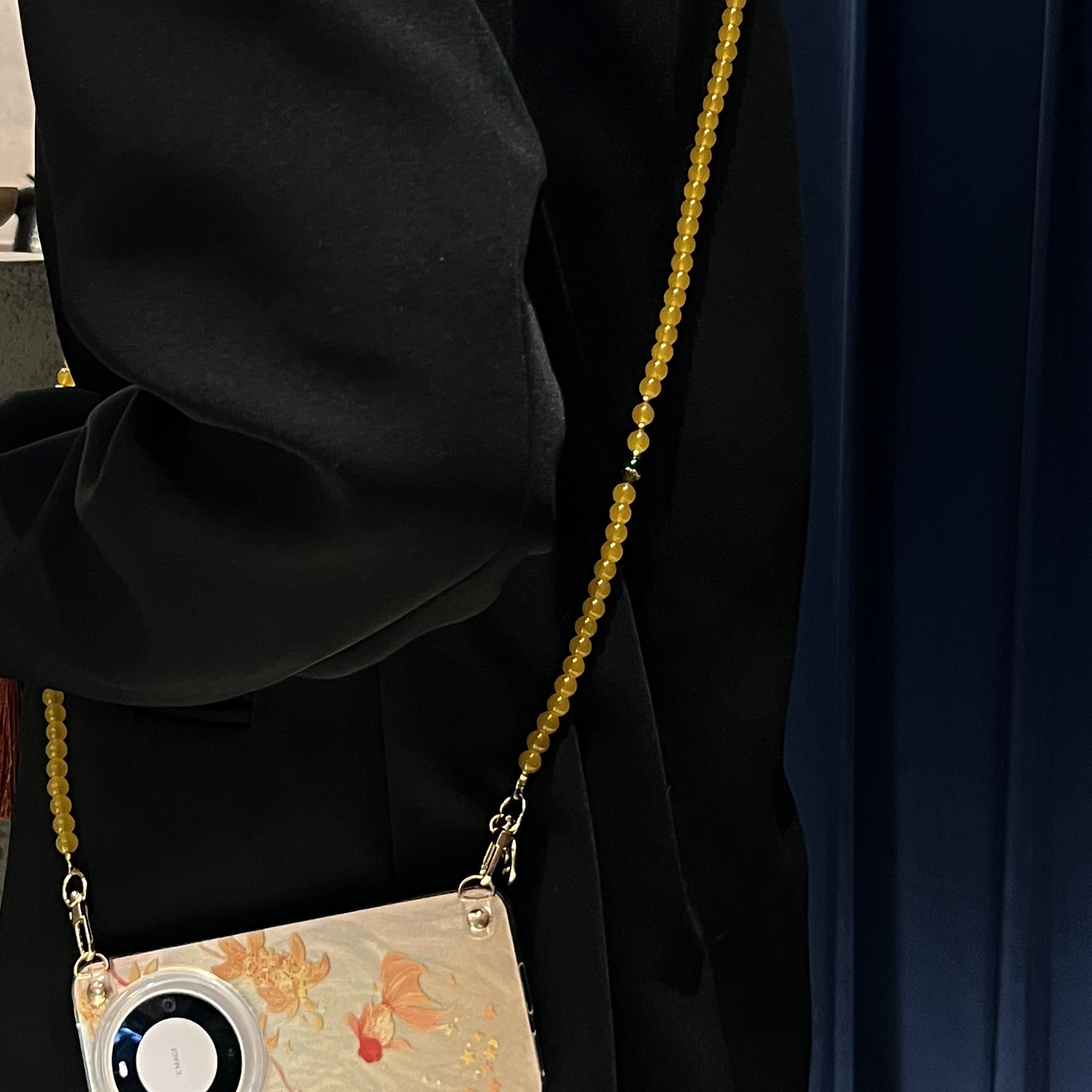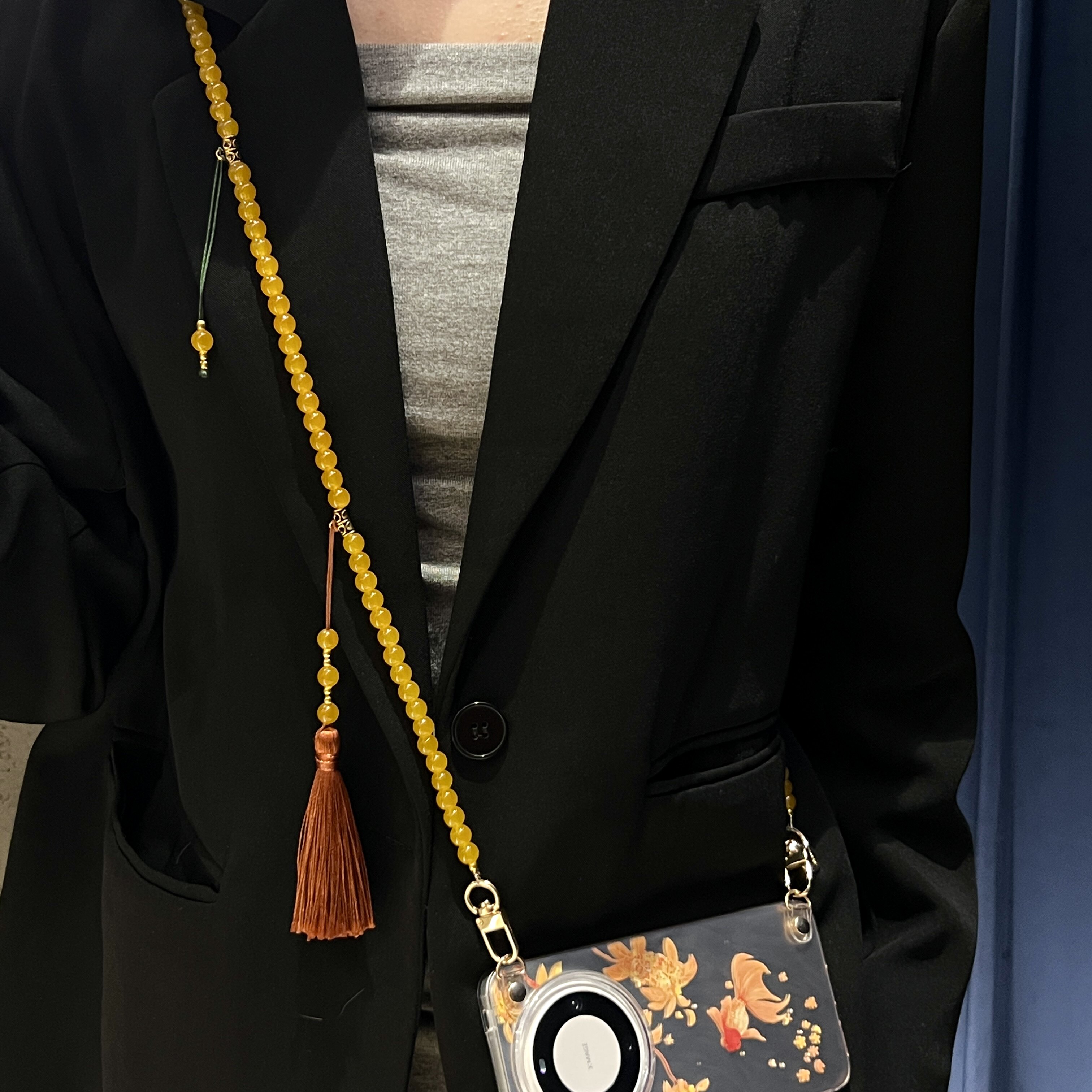 品申原创国风新中式菩提斜挎串珠高级手机链条斜挎防丢手机壳挂链手机挂绳旗袍流苏链背带绳