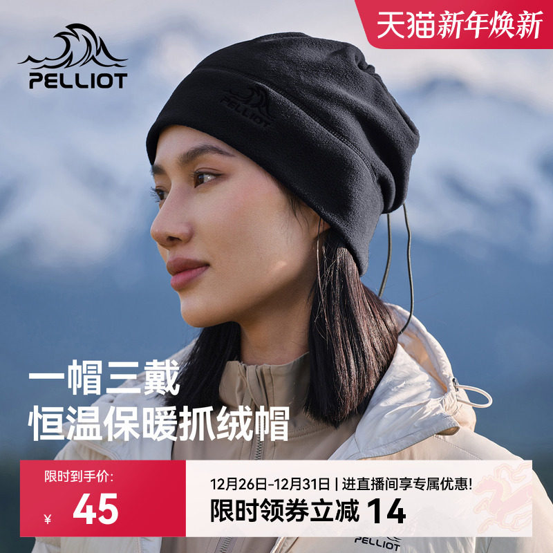 伯希和户外抓绒帽女士冬登山保暖徒步防风骑车防寒帽子围脖一体男