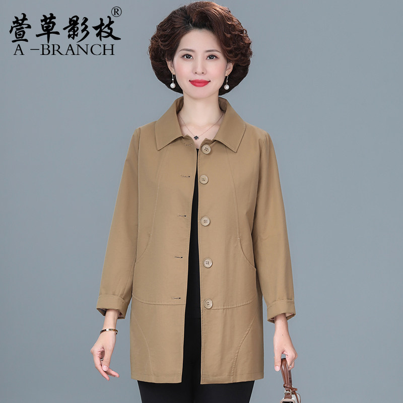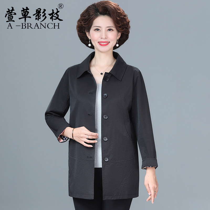 妈妈春秋季外套高贵气质中年女大码品牌贵夫人风衣中老年洋气上衣