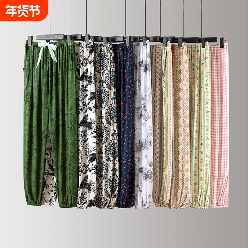 大码棉绸睡裤女夏人造棉薄款可外穿防蚊裤绵绸灯笼裤度假沙滩长裤
