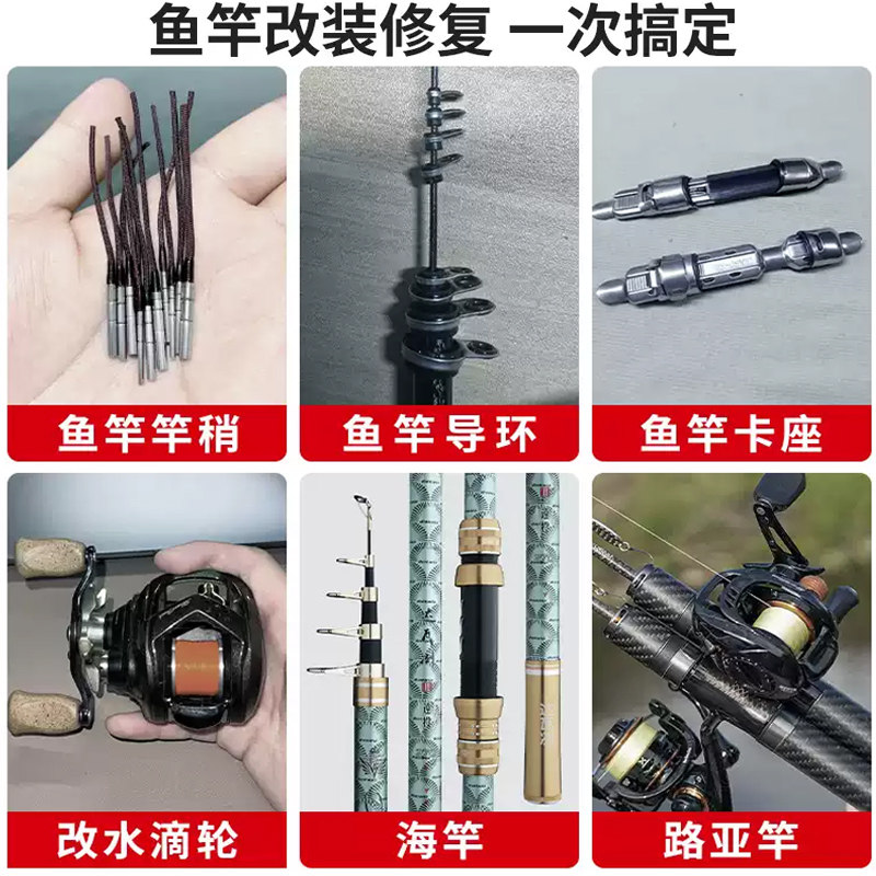 环氧树脂胶鱼竿专用导环ab胶全透明DIY断裂修复材料固定稍绳绑环路亚手竿改矶竿谷麦竿鱼杆漆黑色强力胶