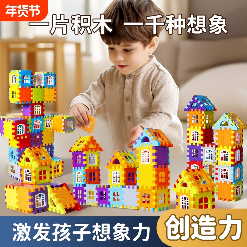 儿童搭房子积木拼装玩具益智大颗粒拼墙窗拼图3岁6女男孩磁力拼插