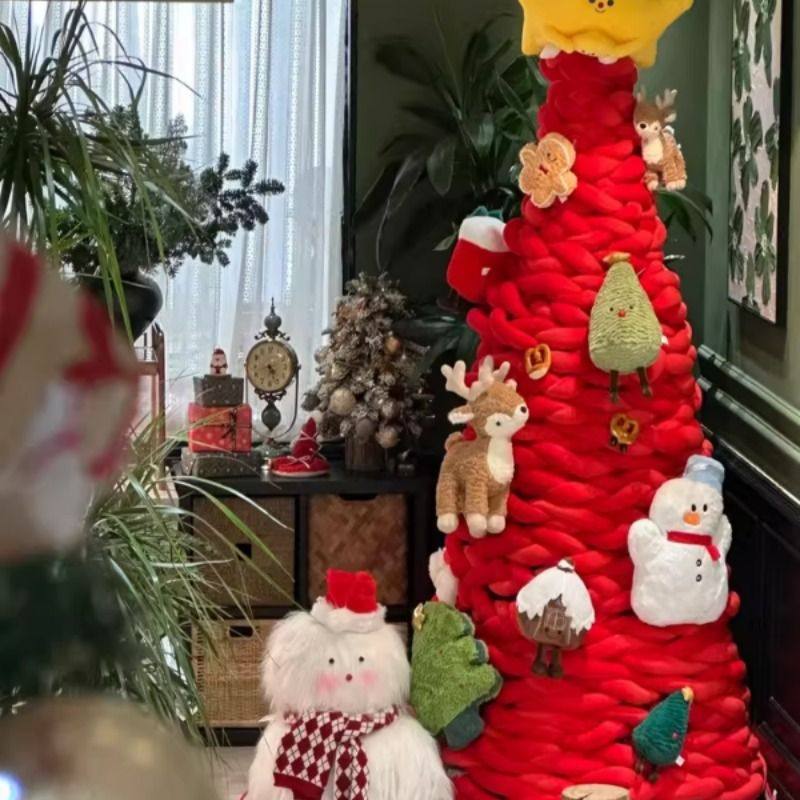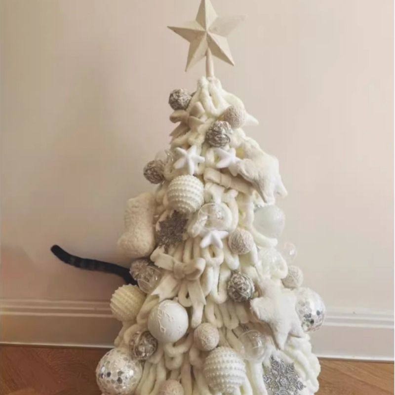 白色圣诞树粗毛线装饰缠绕冰岛线麻花辫毛绒diy手工编织线圣诞毯