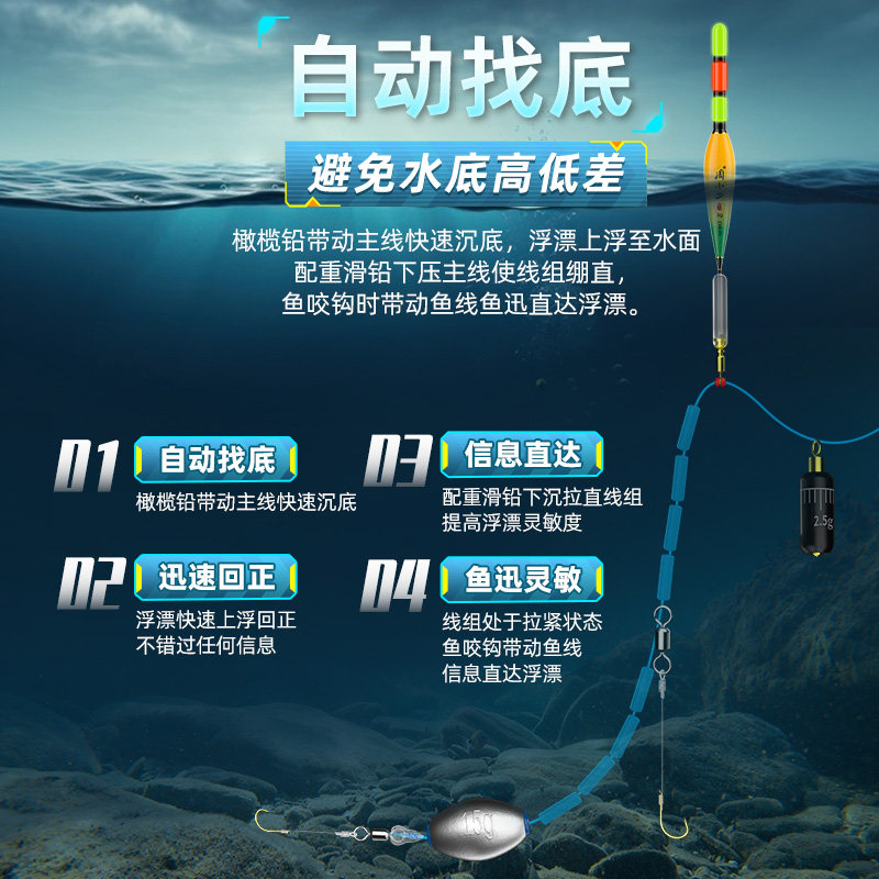 新款自动找底手竿路滑免调漂成品线组鱼线套装绑好翻转钓鱼钩