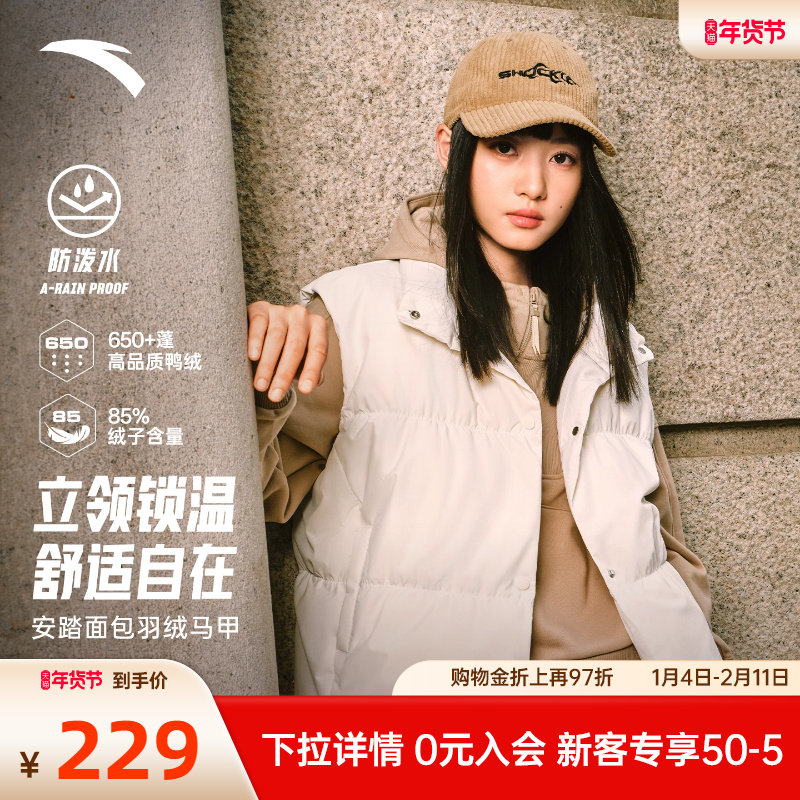 安踏面包羽绒丨防泼水羽绒服马甲女冬季新款宽松保暖时尚休闲外套