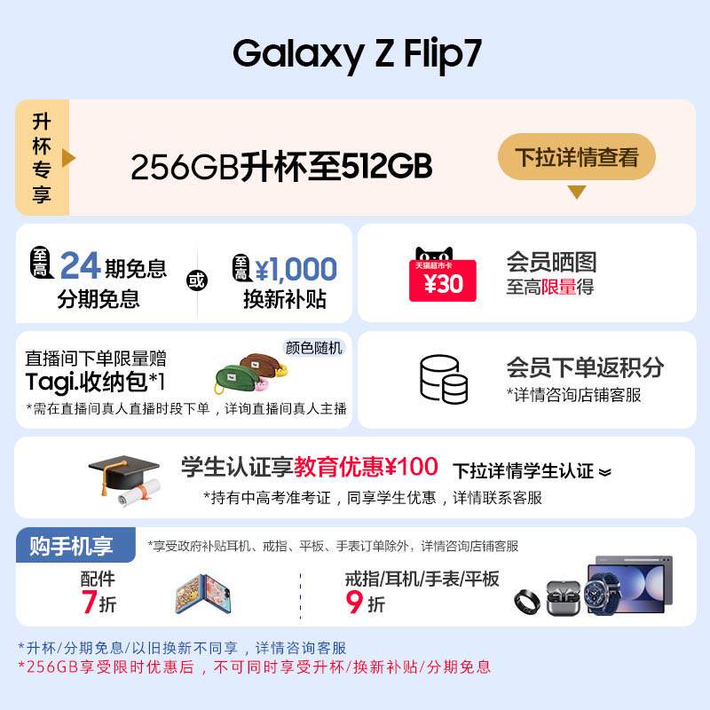 【24期免息】Samsung /三星 Galaxy Z Flip7折叠屏手机超大外屏5000万像素