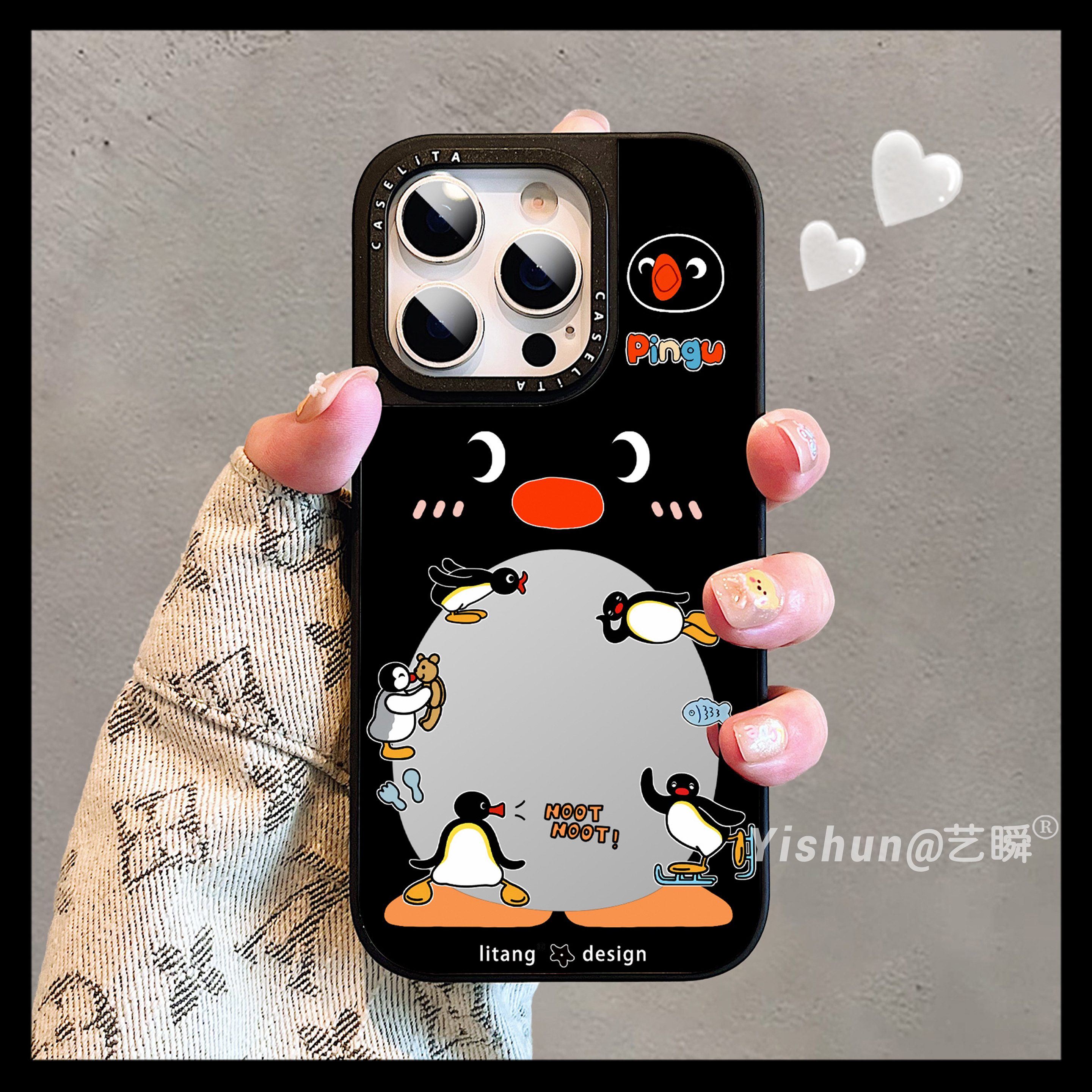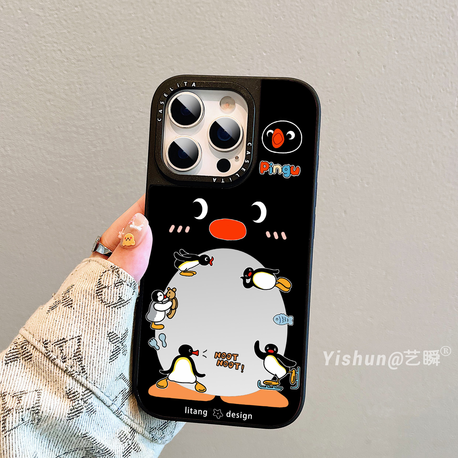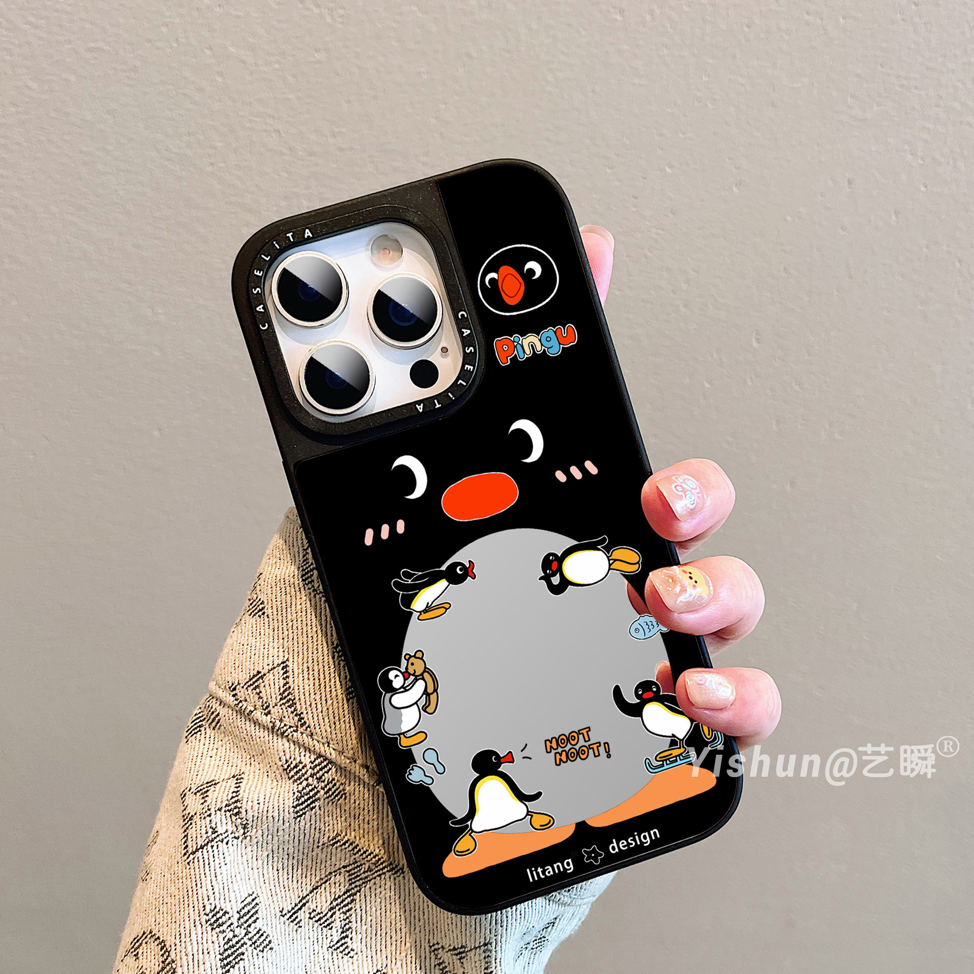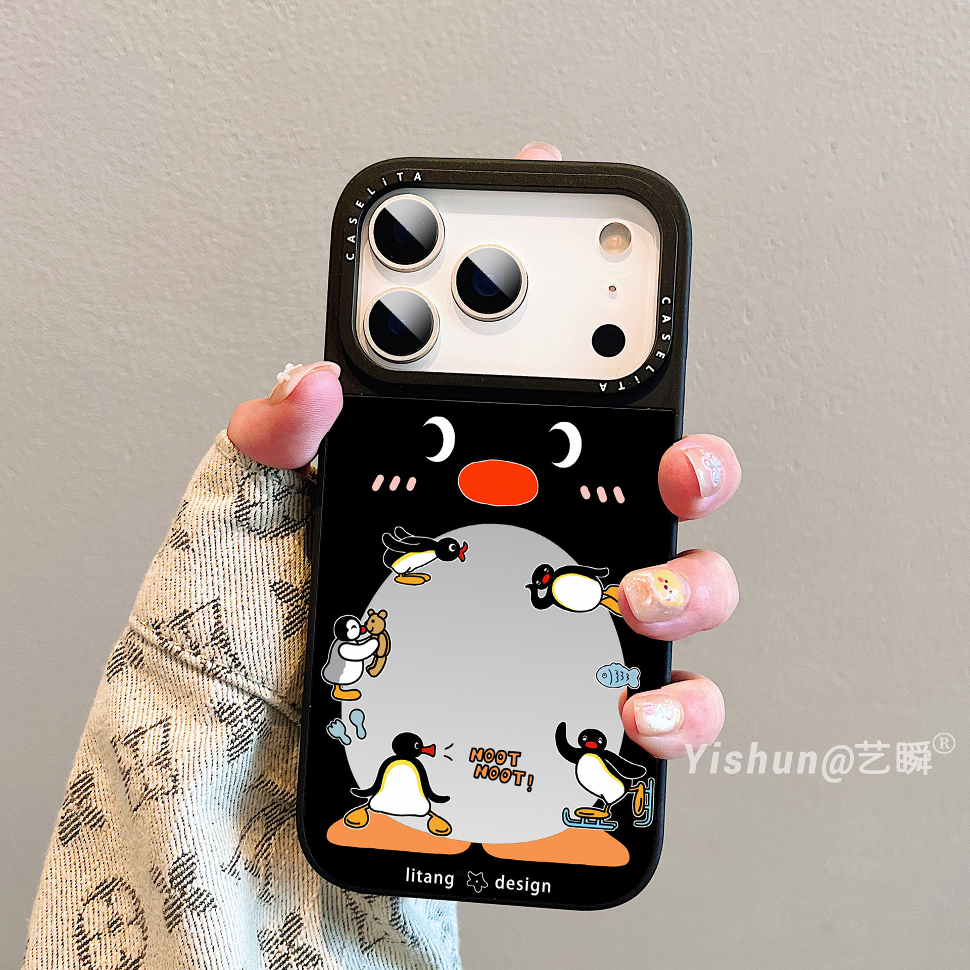 镜面趣味ins卡通可爱腮红玩乐企鹅pingu适用苹果17/16ProMax手机壳iPhone17pro创意15补妆镜子14新款13保护套