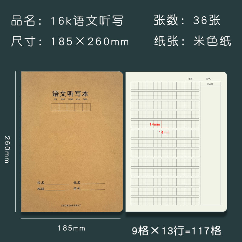 加厚16k牛皮语文听写本小学生一二三四年级带拼音语文听写默认本