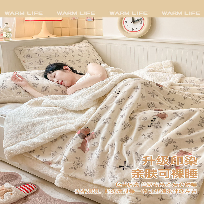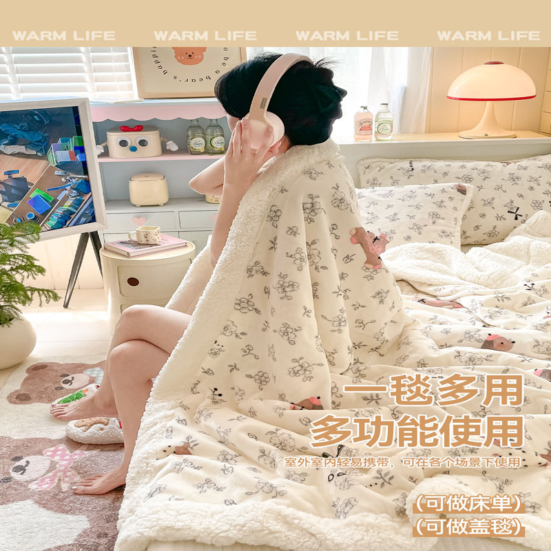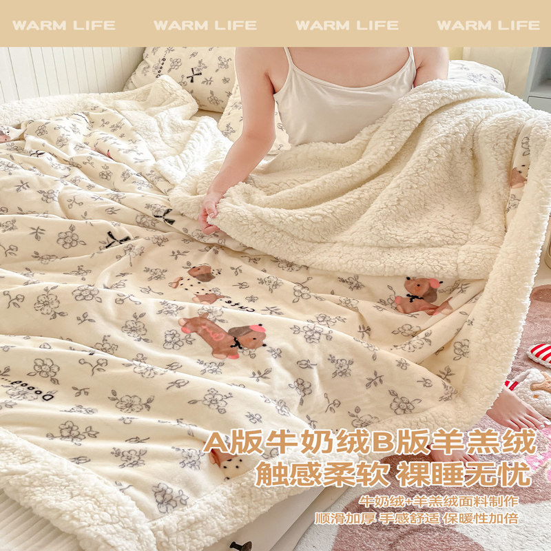 A类牛奶绒毛毯冬季盖毯可机洗单人宿舍毯披肩午睡毯双面绒床单厚