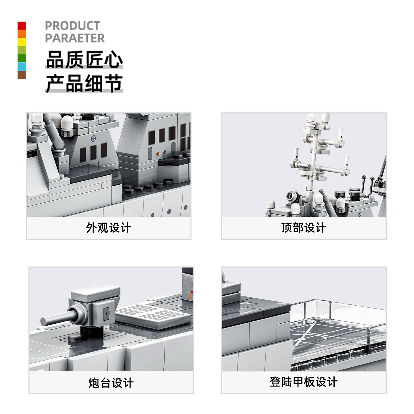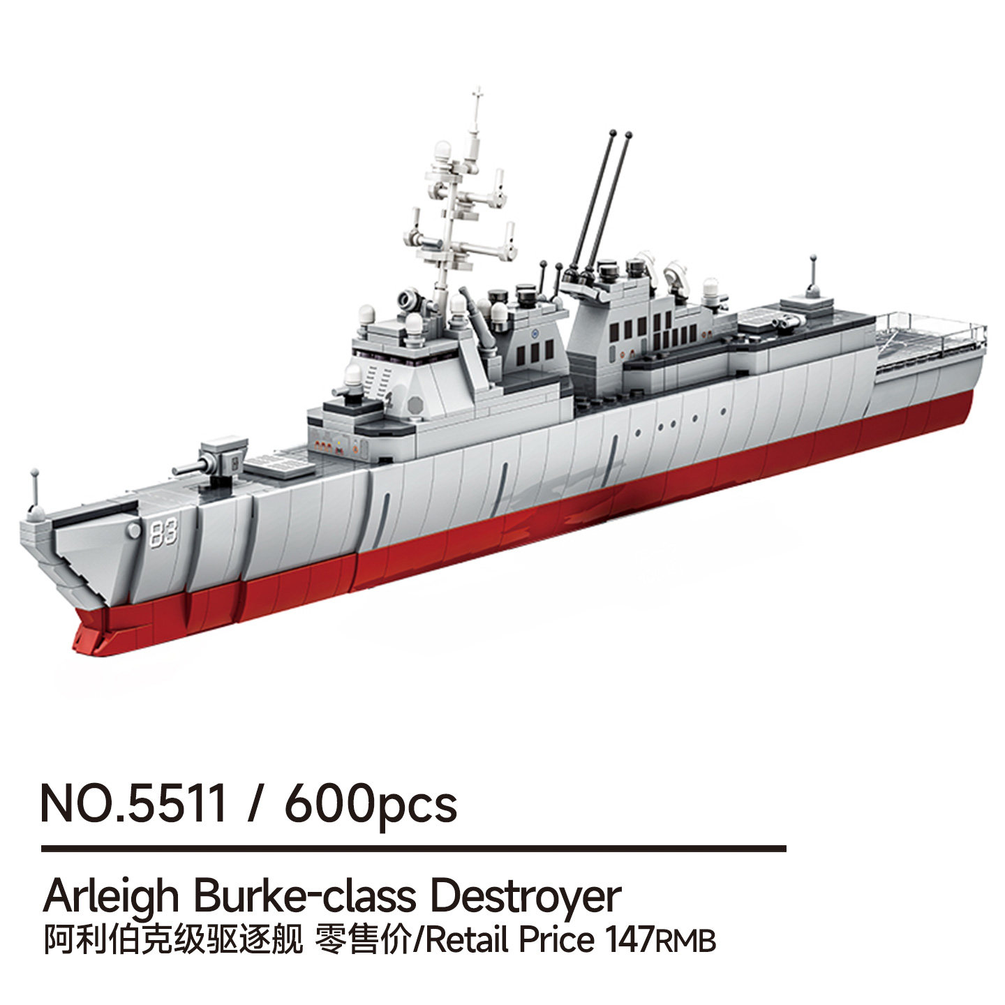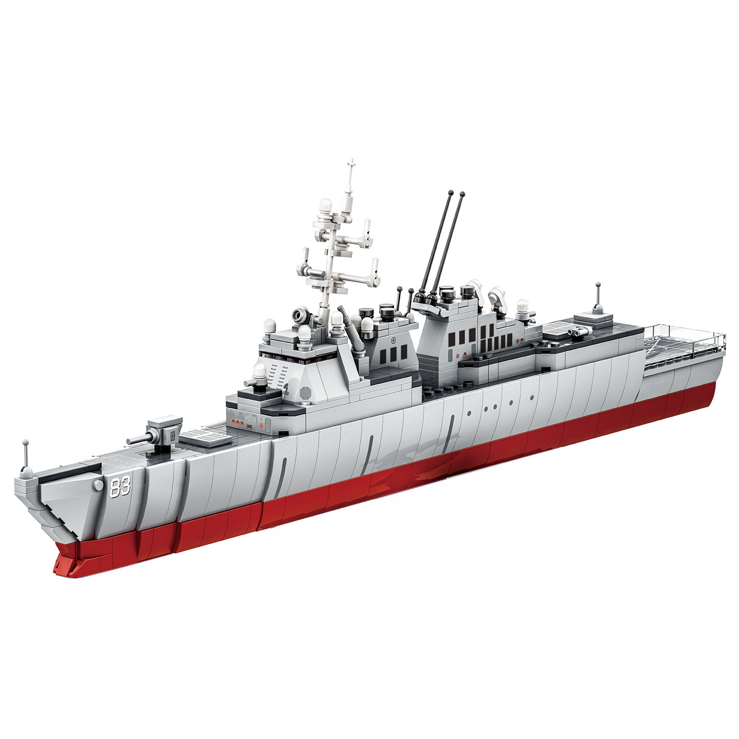 万格儿童益智军事阿利伯克驱逐舰模型小颗粒积木拼搭拼插玩具拼装