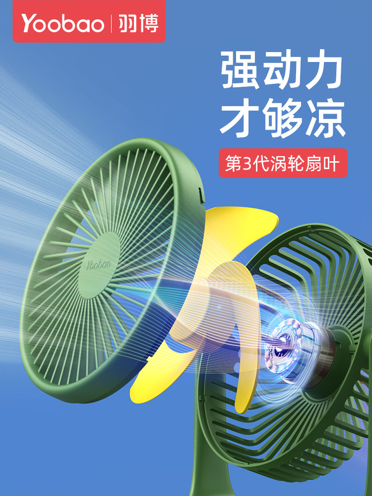 桌面风扇电风扇小型2025新款风扇办公室桌上学生宿舍床上usb便携式随身羽博小风扇手持迷你露营户外电风扇