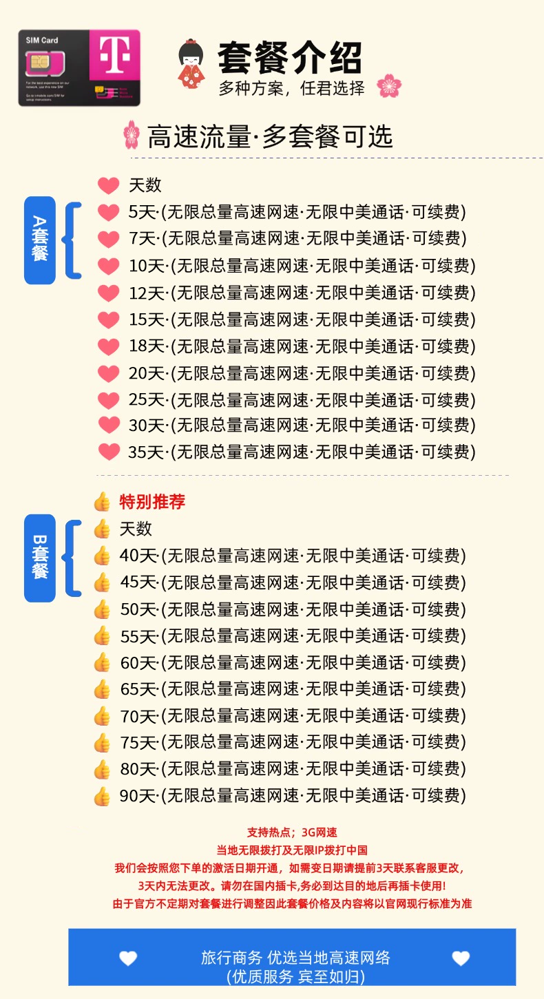 美国电话卡T-mobil无限高速4G/5G手机上网流量卡支持ESIM可续费