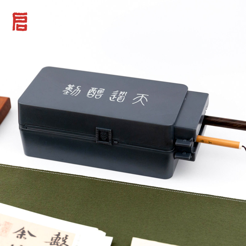 启明文房不干笔砚台带盖密封神器书法墨盒多功能墨池不干笔墨水盒